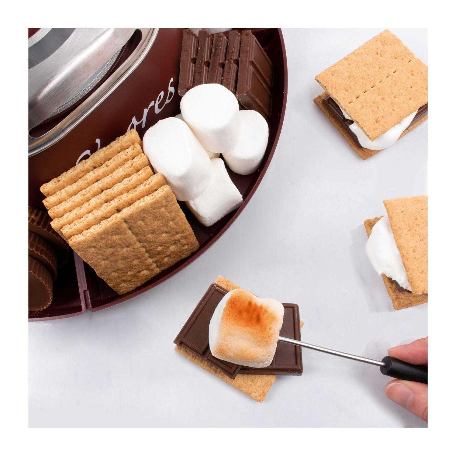Now you can bring a taste of the outdoors inside and enjoy homemade s’mores all year round! The simple pleasure of gooey marshmallow, chocolate and graham crackers can be yours without the hassle of building a bonfire, or dealing with those pesky mosquitos! Simply plug in, turn on and roast your marshmallow to perfection. No batteries or lightbulbs needed! Perfect for guests of all ages, your family will love. making s’mores anytime!