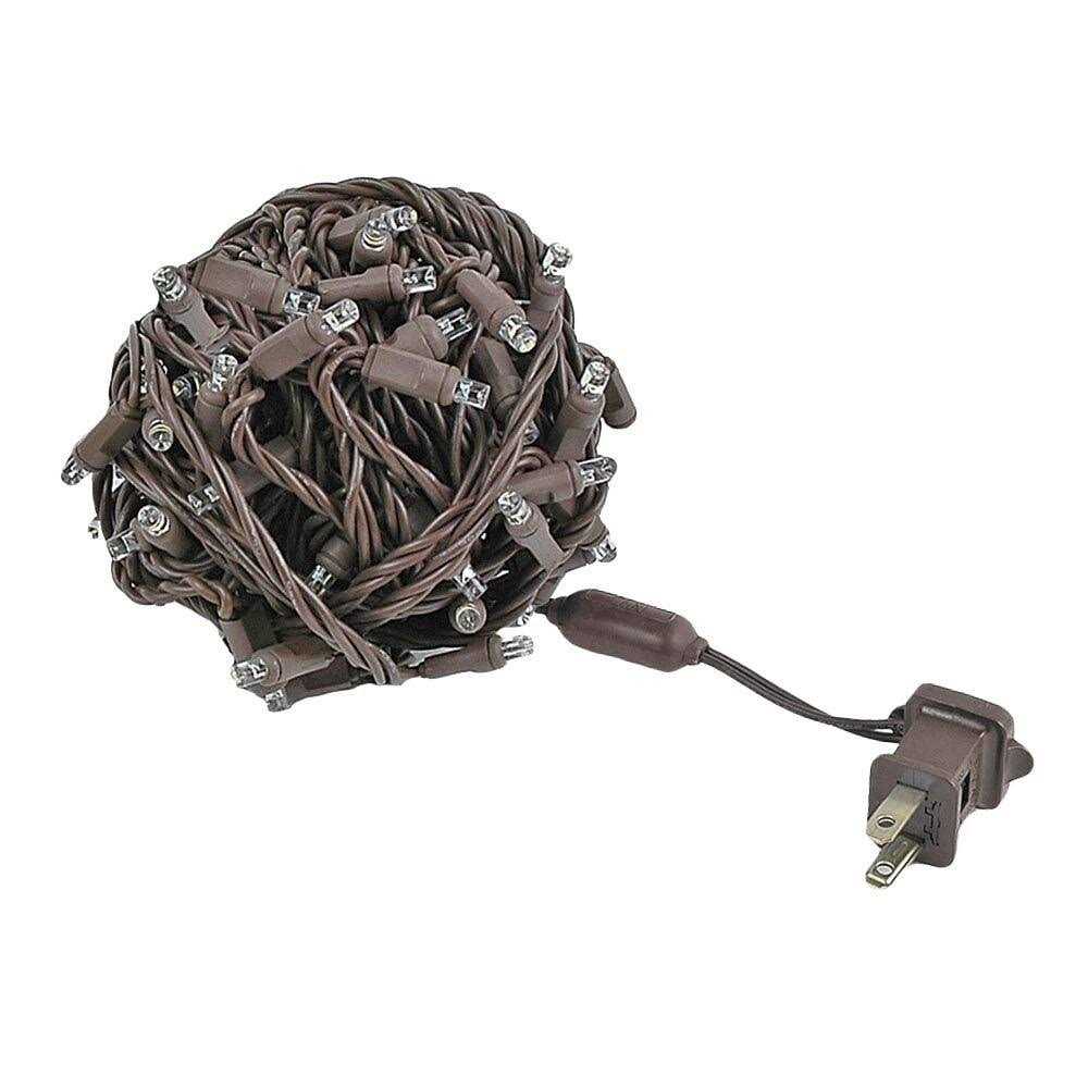 Novelty Lights 100 Light LED Christmas Mini Light Set, Outdoor Lighting Party Patio String Lights, Warm White, Brown Wire, 34 Feet