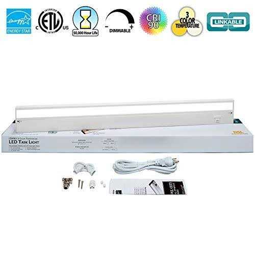 NSL Task Star Pro Collection Color changeable LED task light in white finish, has aluminum housing and a matte white polycarbonate diffuser for added durability. It utilizes 16-Watt 90+ CRI 2700K to 4000K 850 to 900-Lumen LED lamp for energy efficiency, superior color rendering and long life. The LED task light has a hi-low rocker switch and a slide selector switch for changing Kelvin color temperature. This sleek fixture utilizes edge lit technology for no hot spots on the polished marble or granite counter top. The light is rated to 50000 hours and dimmable with most ELV dimmers. It is suitable for under cabinet task light, over cabinet accent light, display cases and exhibits, merchandising, indirect accent light, wall units and bars, office work stations. LED task light is cETLus listed and Energy Star rated for dry locations.