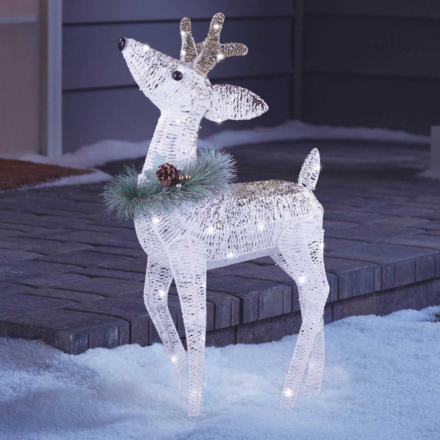 Enhance your holiday décor with this elegant Philips LED Glitter String Fawn. Fawn is 27.4″ tall with 60 pure white LED lights with twinkle effect. White and champagne glitter finish gives this fawn a beautiful effect outdoors. Fawn is easy to set up, and includes ground stakes. Perfect for porch or yard use.