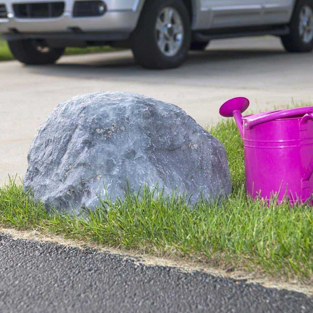 Hide eyesores in your yard with this Outdoor Essentials medium artificial rock. The hollow fake rock has enough height to hide a vent pipe and enough surface area to cover a septic cleanout. The rock can also conceal electrical boxes and wellheads. This 13-pounder is a lot easier to move around than an actual rock of the same size. It looks just like a real stoneyou can substitute it for real rocks in your landscaping bedno one will know. Plus, you can drill holes in it for wires or a hose. Hand painted in mixed colors, mostly gray. Note that the color will vary from the pictures. Because of its realistic shape, the rocks interior dimensions will vary from point to point. Size given is overall dimensions.