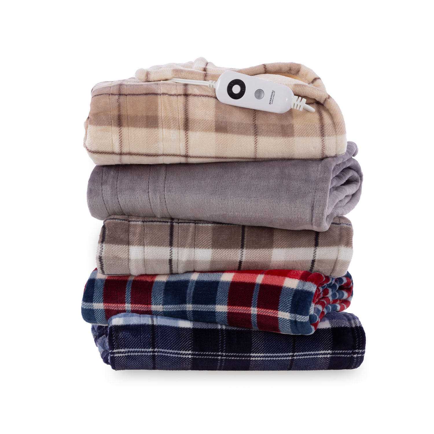 Berkshire Blanket Berkshire Ultraplush Heated Oversized 60′ x 70′ Throw-Plaid Neutral