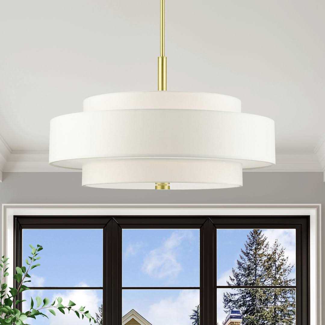 Paquette 5 – Light Shaded Drum Chandelier Andover Mills Finish: Satin Brass, Shade Color: Off-White