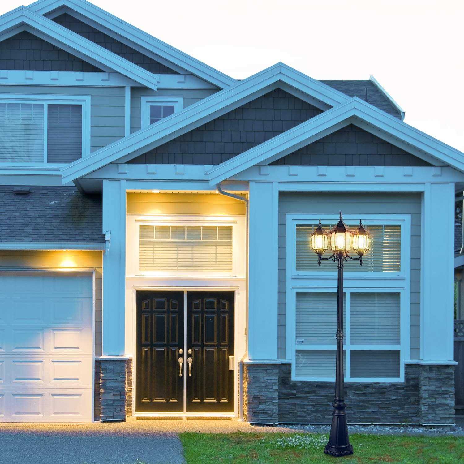 With a classic and 3-head design, the traditional lamp post is made of sturdy die-cast aluminum and clear glass panels. The black finish pole design adds a vintage style to your outdoor decoration.