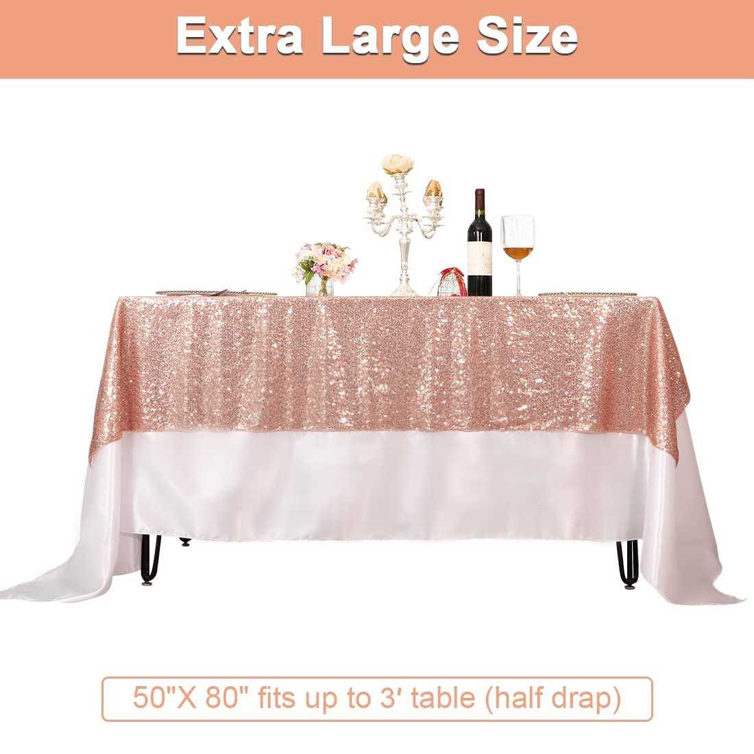 PartyDelight Sequin Tablecloth, Rectangular, 50″x80″, Rose Gold