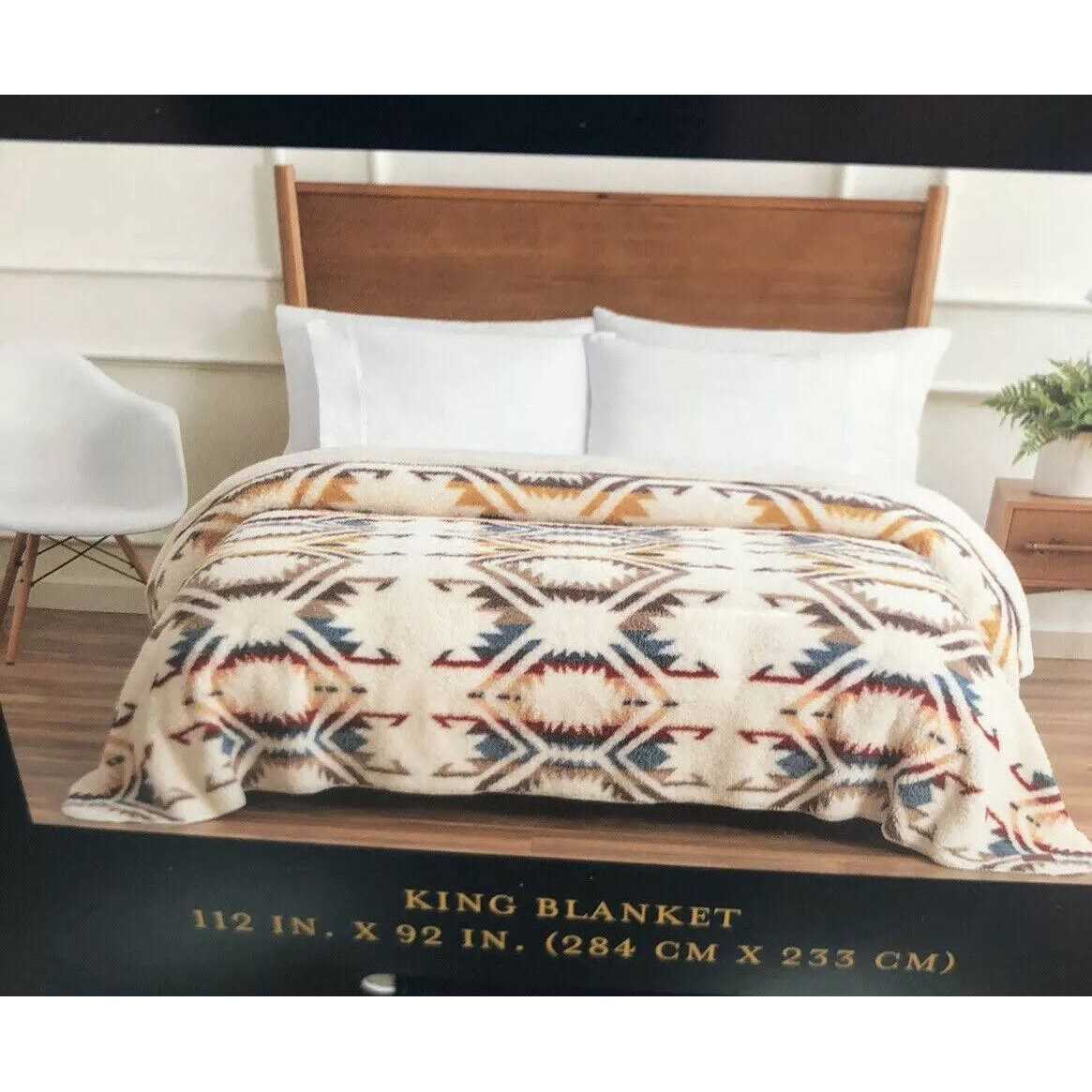PENDLETON Sherpa Fleece BlanketSize: Twin (66″ x 92″)Brand newProduct Details:Add texture and pattern to your room with the Sherpa Fleece Blanket by Pendleton. This blanket features a printed soft sherpa fleece face and reverses to a solid plush fleece. It is a great addition to any room providing warmth, comfort, and style.Features: Brand: Pendleton Printed Sherpa Fleece Face Reverses to Solid Plush Ultra soft and cozy Machine washable Made in China Content: 100% Polyester Dimensions: Twin: 66 in. x 92 in. (167cm x 233 cm) Care Instructions: Machine wash cold, gentle cycle Only non-chlorine bleach when needed Tumble dry low Do not iron