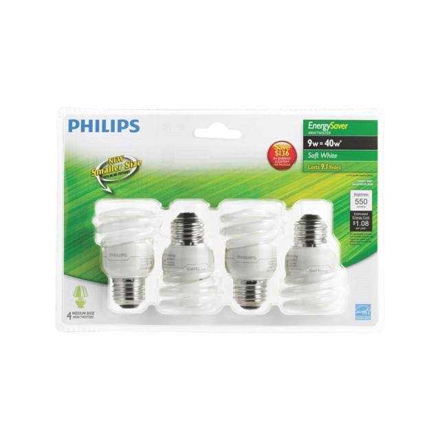 Philips 4pk 9W T2 Swmed CFL Bulb 417063