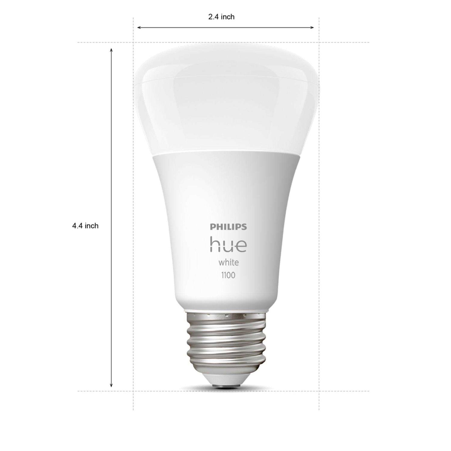 Easy smart lighting from Philips Hue with a fully dimmable smart light bulb, now with more brightness as a 1100 Lumens 75-Watt equivalent. Use Bluetooth for instant light control in 1 room or connect to the Hue Bridge (sold separately) to unlock the full set of smart lighting features. with the Hue Bluetooth app, you can directly control your Hue smart lights in a single room of your home. Add up to 10 smart lights and control them all with just the touch of a button on your mobile device. Control lights with your voice. Get hands-free control of your lights and use your voice instead. Simple voice commands allow you to control multiple lights in a room or just a single lamp. Works with the Google Assistant and Amazon Alexa. Easy 2-step installation. Just screw in your Hue Bluetooth bulb and download the Hue Bluetooth app to connect directly to your new bulb. Create a personalized experience with smart light. Set the right mood with soft white light. Dimmable from bright-daylight to low nightlights, these smart lights allow you to fill your home with just the right level of light when you need it.