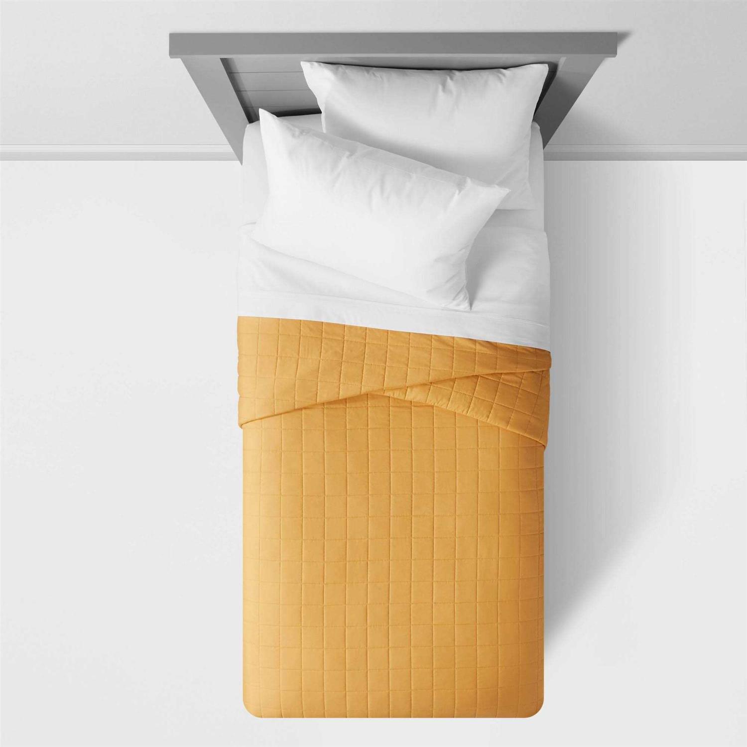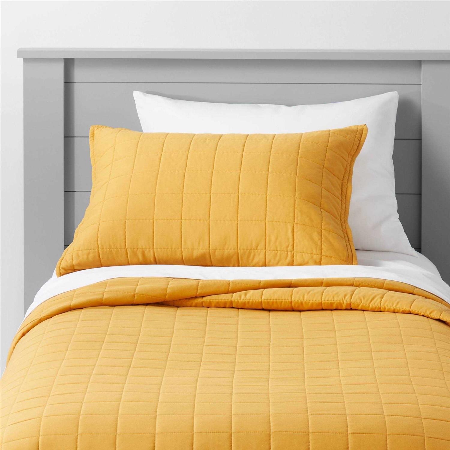 Twin Box Stitch Microfiber Kids’ Quilt Yellow – Pillowfort
