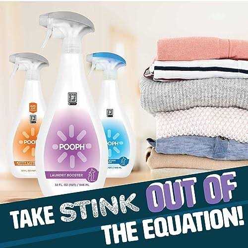 POOPH Cat & Dog Laundry Booster, 32-oz bottle; Keep your home smelling fresh and clean with POOPH Cat & Dog Laundry Booster! This fragrance free formula is designed to eliminate odors and stains in a quick, perfume-free manner. It is designed to reduce stains and odors from feces, urine, vomit, and other messes your furry friend leaves behind. By removing odor from the source, this laundry booster helps prevent your pal from making messes in the same spots over and over again. Made without VOCs and HAPs, this booster is safe for you, your pets, your plants, and the planet. Plus, it will not leave any unsightly stains after use, so you can use it all over the house. Simply use as instructed in the wash to remove stinky pet smells!