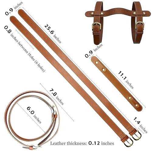 PortableAnd Genuine Leather Outdoor Picnic Blanket Carry Strap for Camping Festivals Picnics Motorcycle Bedroll Straps (Natural Brown)