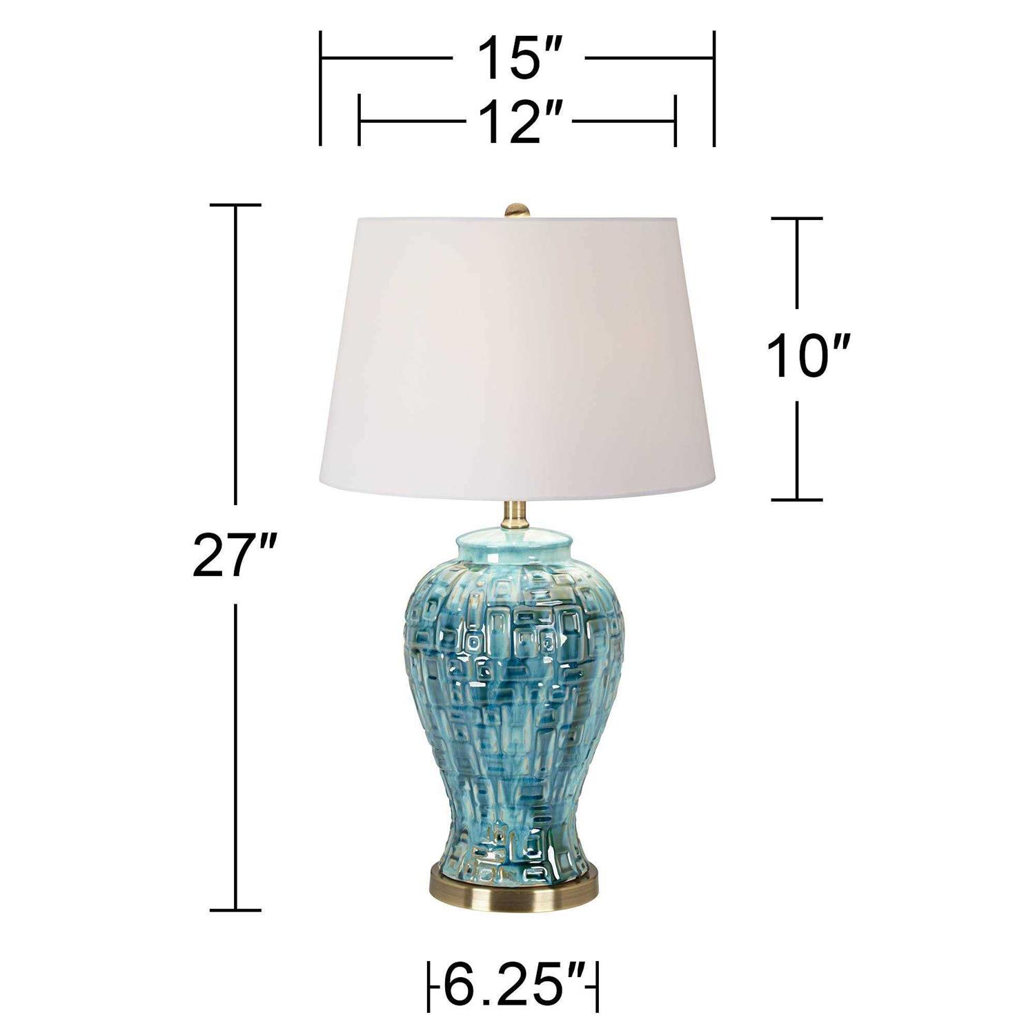 Possini Euro Design Teal Temple Jar Table Lamps 27″ Tall Teal Ceramic with Table Top Dimmer White Empire Shade for Bedroom Living Room Bedside Office