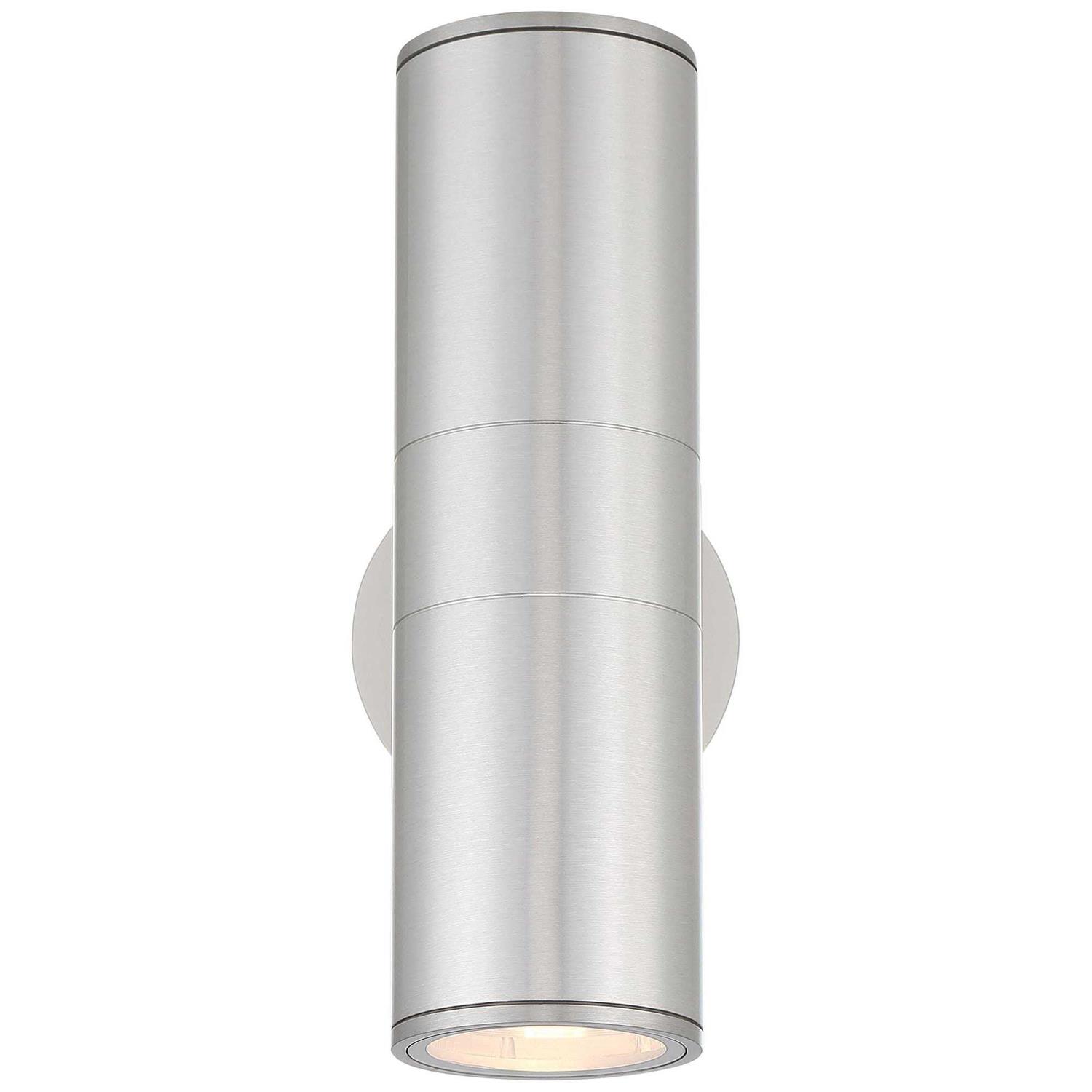 Add these sleek contemporary designs to your porch, patio, or outside wall. This pair of outdoor wall lights comes in a cylinder aluminum body in a brushed nickel finish for a clean and classic look. The dual up-and-down lighting design sends beautiful illumination up from the top and out from the bottom of the fixture.