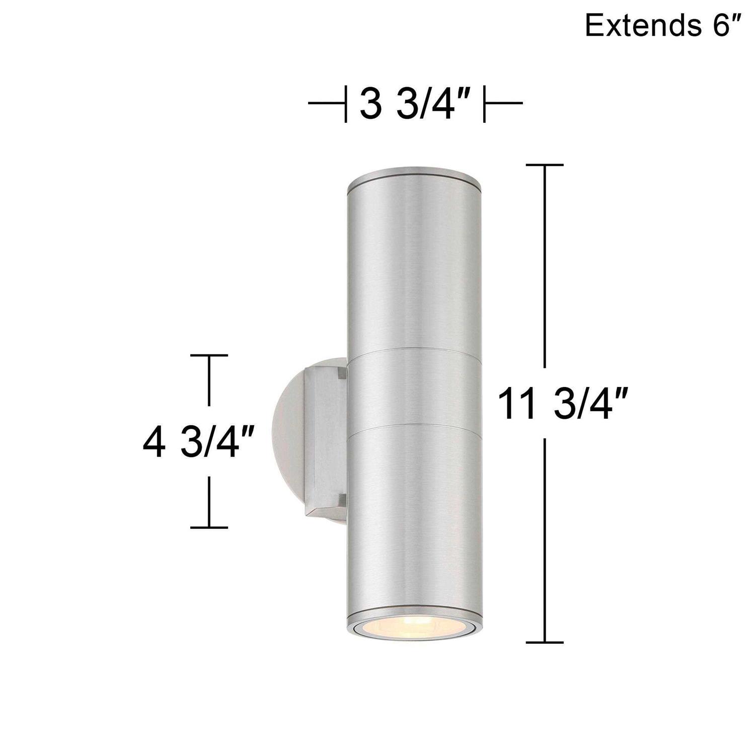 Possini Euro Design Ellis Modern Outdoor Wall Light Fixture Set of 2 Brushed Nickel Up Down 11 3/4 inch for Post Exterior Barn Deck House Porch Yard