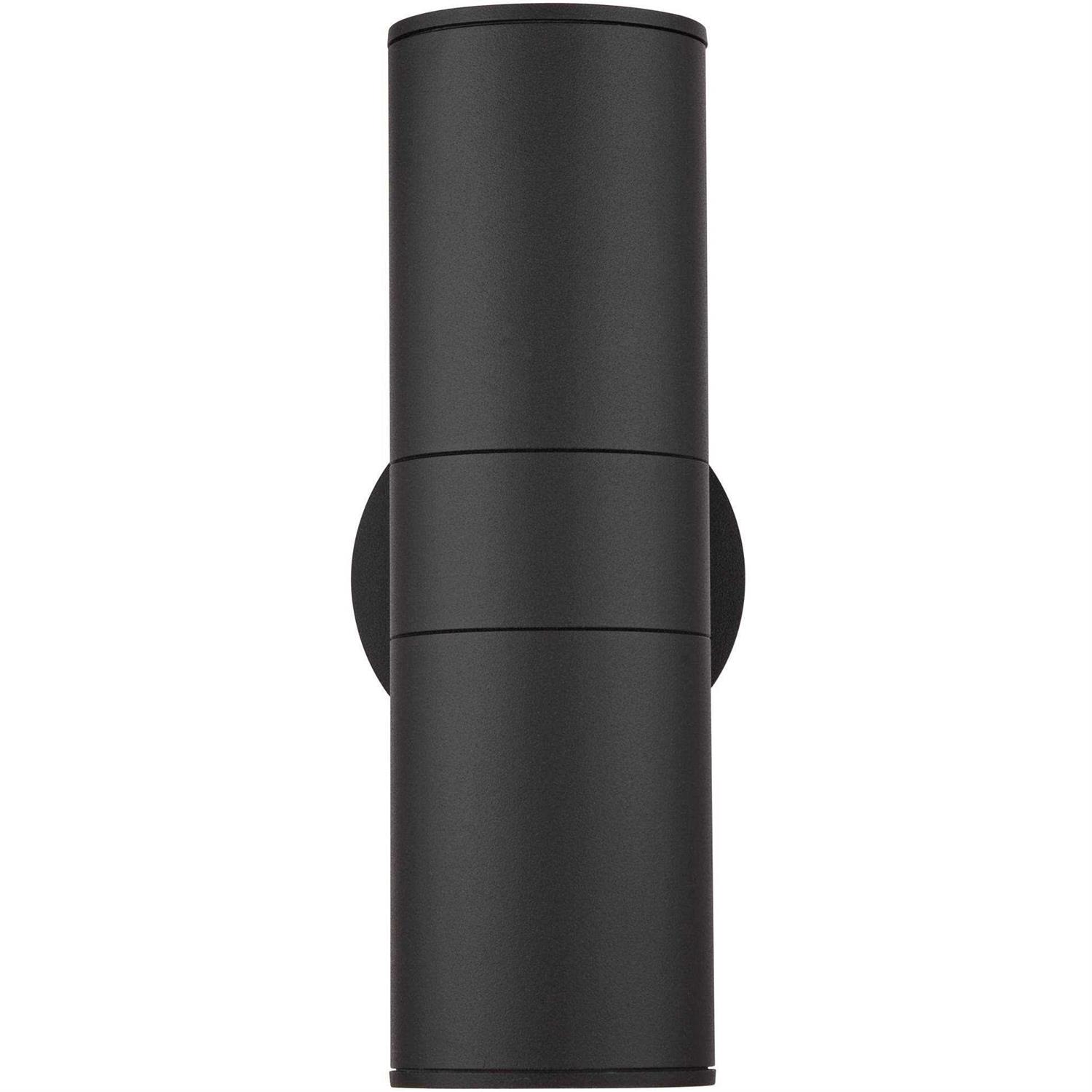 - Light is directed up and down on the wall; black finish, tempered glass lens, aluminum tube construction.