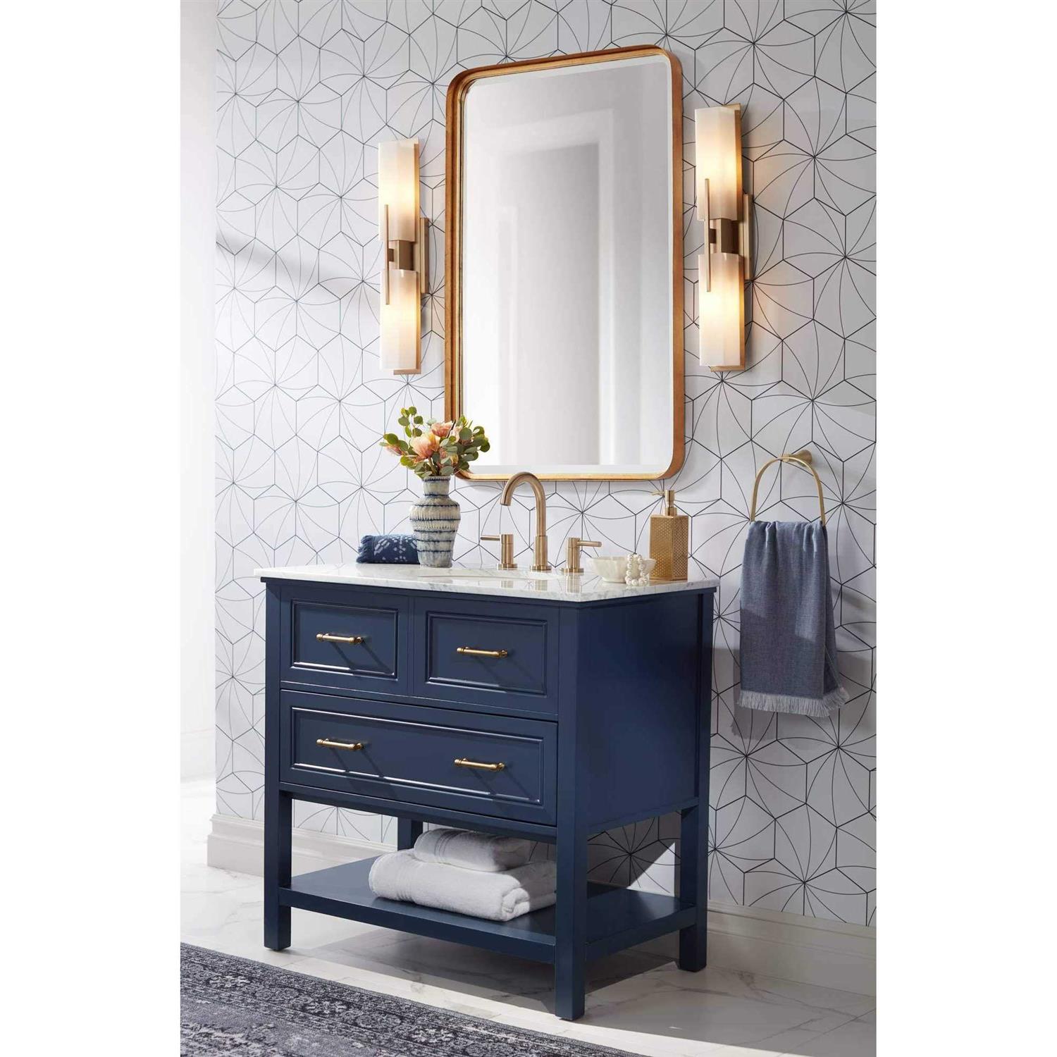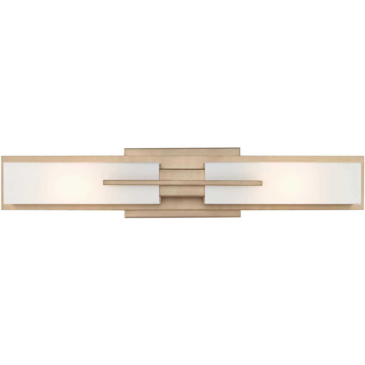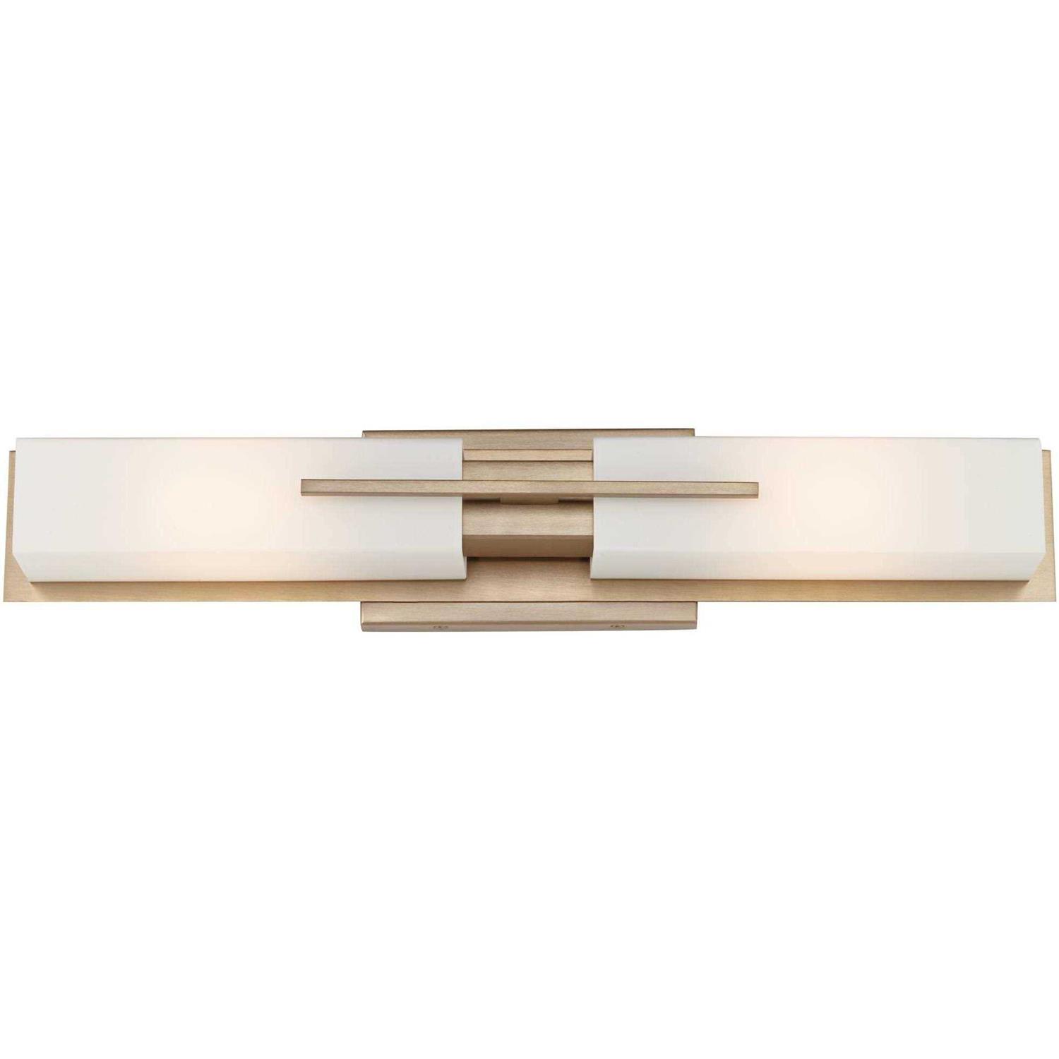 Add a comforting contemporary look to your bath or vanity area with this white glass and burnished brass bath bar light fixture from the Possini Euro Design Midtown collection. Attractive and versatile transitional style 2-light wall fixture can be mounted vertically as shown or horizontally. Add one to each side of a bathroom mirror on the vertical or hang horizontally above the mirror. This chic light looks great in any direction.