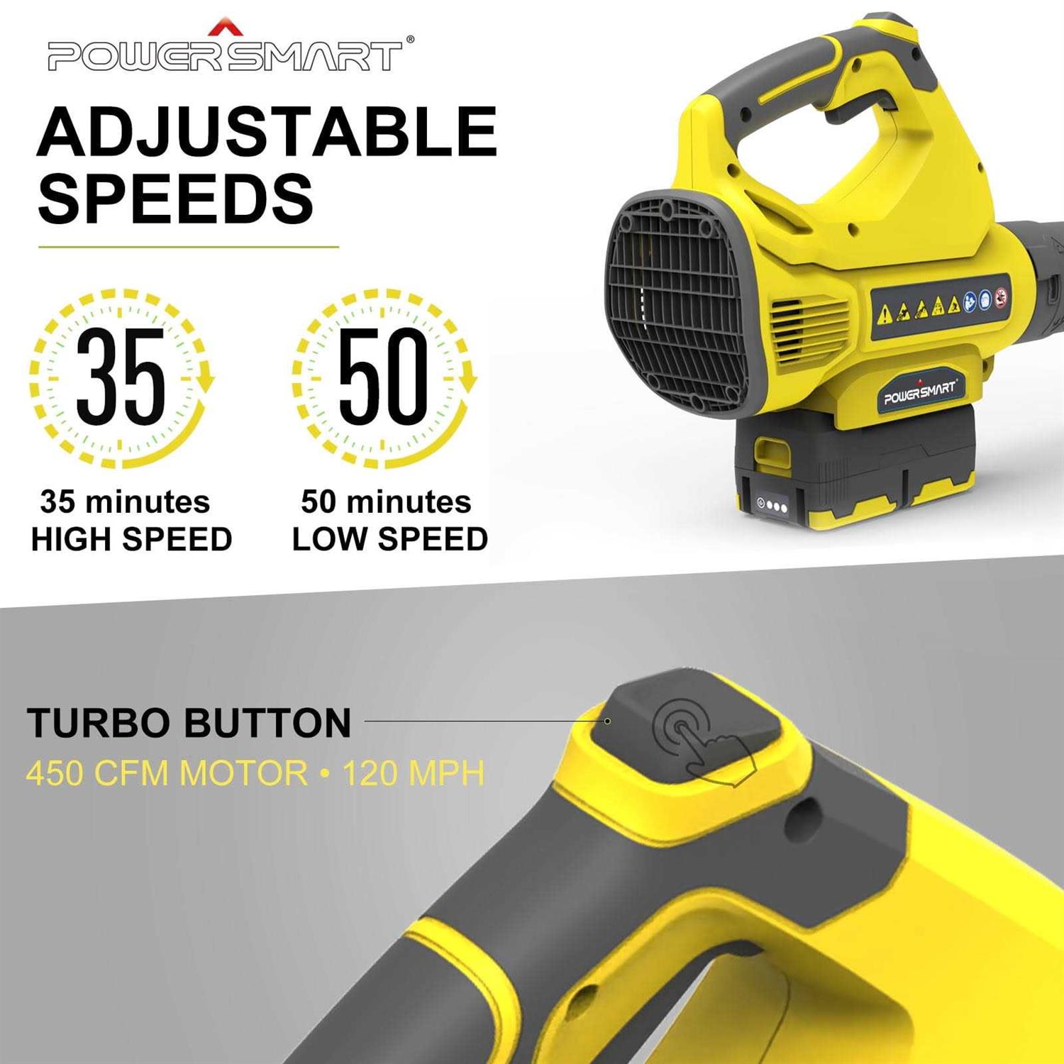 PowerSmart cordless electric lawn mower contains with brushless motor, 40V 4.0 Ah Lithium-Ion battery provides you powerful back up for clearing the tallest and toughest grass. – It is ideal for yards up to 1/2 acre in size. – Brushless technology provides consistent power without bogging down, and extended motor life for many seasons to come. – It has a 17 in. durable steel deck and easy push button starting. This cordless mower has 5-position height adjustment which allows you to change the cutting height to cut grass and overgrowth easily, cutting height in this push lawn mower can be adjusted between the range of 1.2 to 3.0 inch, cutting width is 17 inch. – The mower’s 3-in-1 capability allows for mulching, rear bagging or side discharge. It has 8 inch rear wheels for smooth traction while trimming your yard. The PowerSmart 40V Leaf Blower provides 450 CFM and 120 MPH of power, which provides maximum power for clearing debris off hard surfaces. This blower features a good balance with lightweight design and the tube is removable for easy storage. – The POWERSMART 40V Battery is compatible with all PowerSmart 40V tools, providing you with ultimate battery compatibility across the 40v tool lineup.