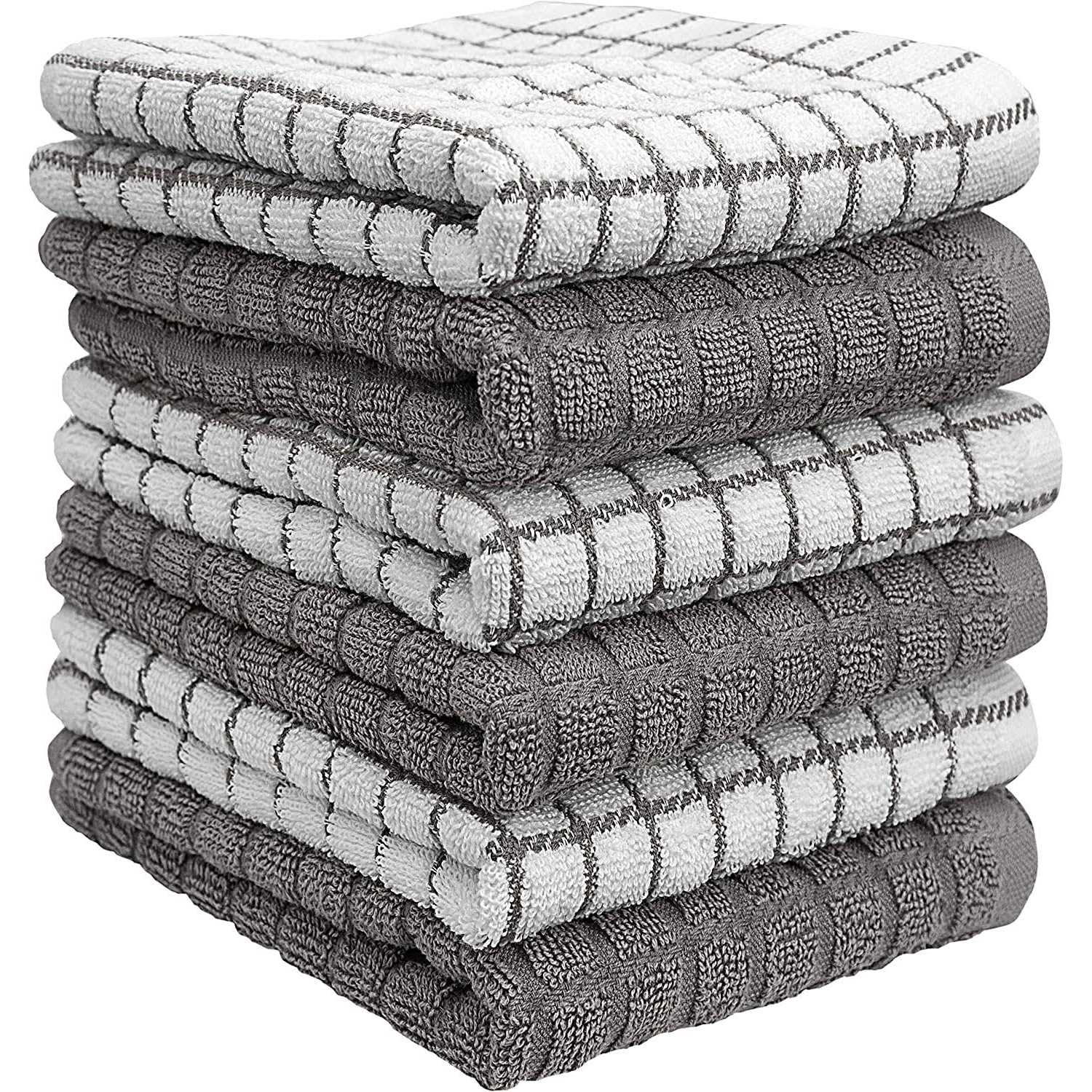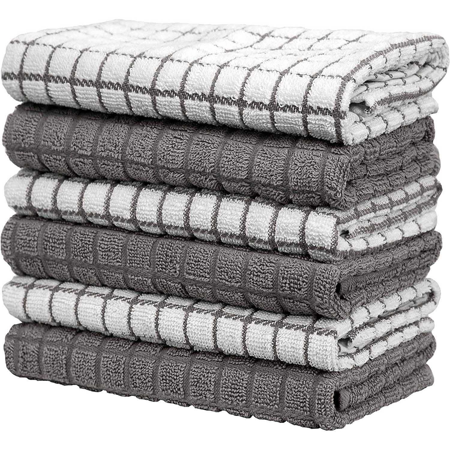 Spills and messes can happen at any moment when youre working in the kitchen and with multiple in a pack, you can grab a fresh towel any time. Great for the environment and your budget. Toss them in the washer and dryer for ultimate easy care.Available in various colors and chic designs to complement every home. Each pattern brings a contemporary flair that blends well with any kitchen dcor. From farmhouse to rustic to modern, these towels are decorative, while also serving as a functional, must-have kitchen accessory.