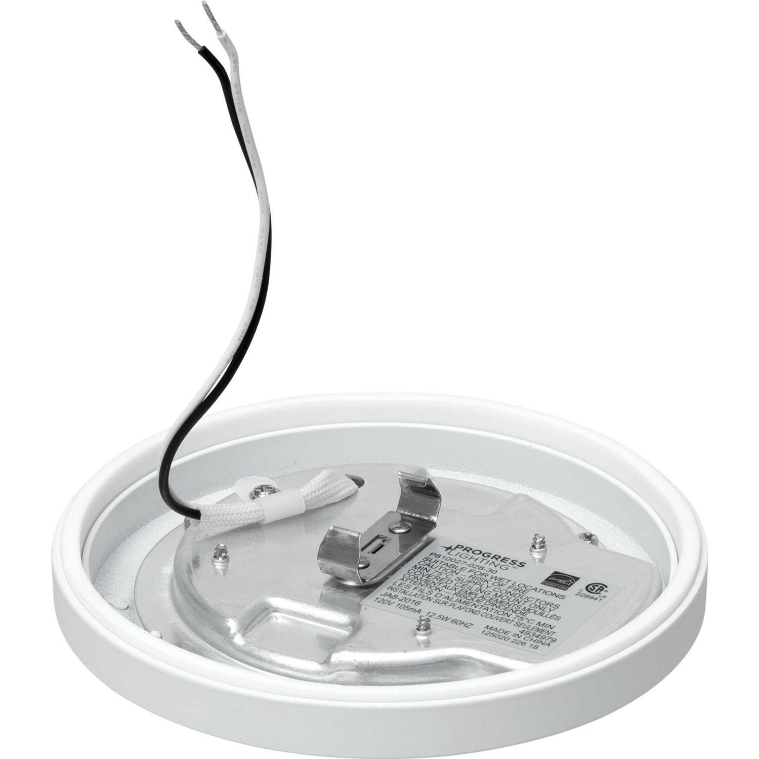 The P810027 delivers a solution for residential and light commercial applications. An integrated AC LED light engine allows for installation to 4″ octagonal junction boxes and 4″x1/2″ pancake boxes. The slim, low-profile design can be mounted onto junction boxes as shallow as 1/2″. The diffused polycarbonate lens controls glare and hides LED pixilation, while spring steel mounting clips offers easy and intuitive snap in installation. Lumen output comparable to 60W incandescent light bulb. Features a 50,000-hour LED life and 80% energy savings. The P810027 is listed for Wet Locations and is suitable for covered ceiling and wall mounting. It is a cost effective solution for fire rated applications when using a fire rated junction box. Flicker free dimming down to 10% with many Electronic Low Voltage (ELV) and Forward Phase (TRIAC) dimmers.