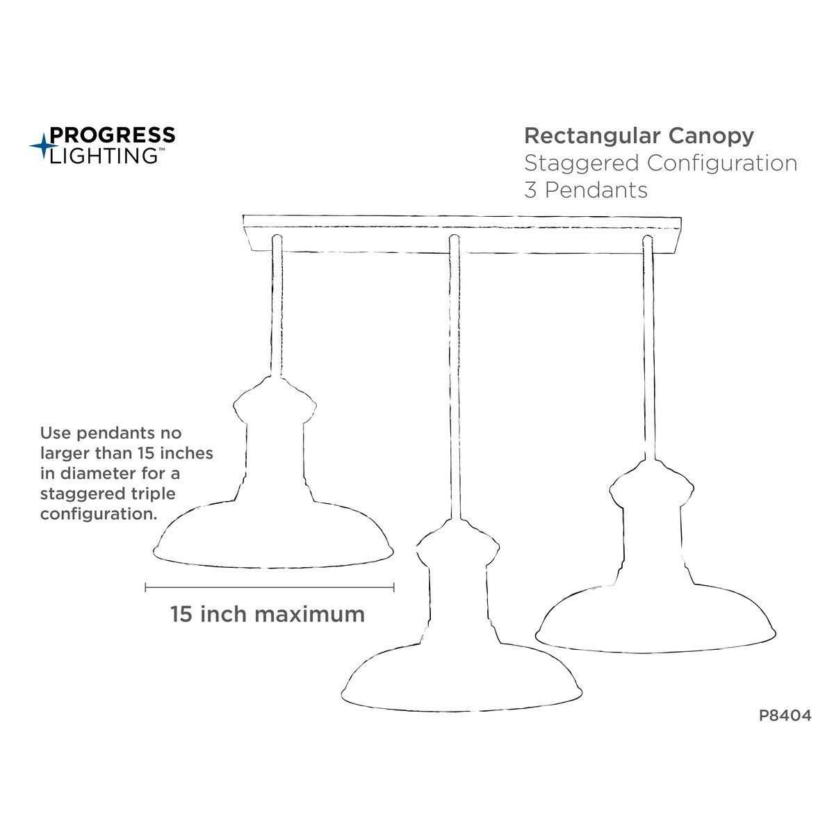 Progress Lighting Progress Lighting’s canopy accessory offers a convenient way to mount groupings of pendants. This linear pendant accessory allows for the hanging of two or three pendants off of one outlet box. Pendants can be hung straight or staggered. Maximum pendant width for two lights is 18” each. Maximum pendant width for five lights is 9” each.