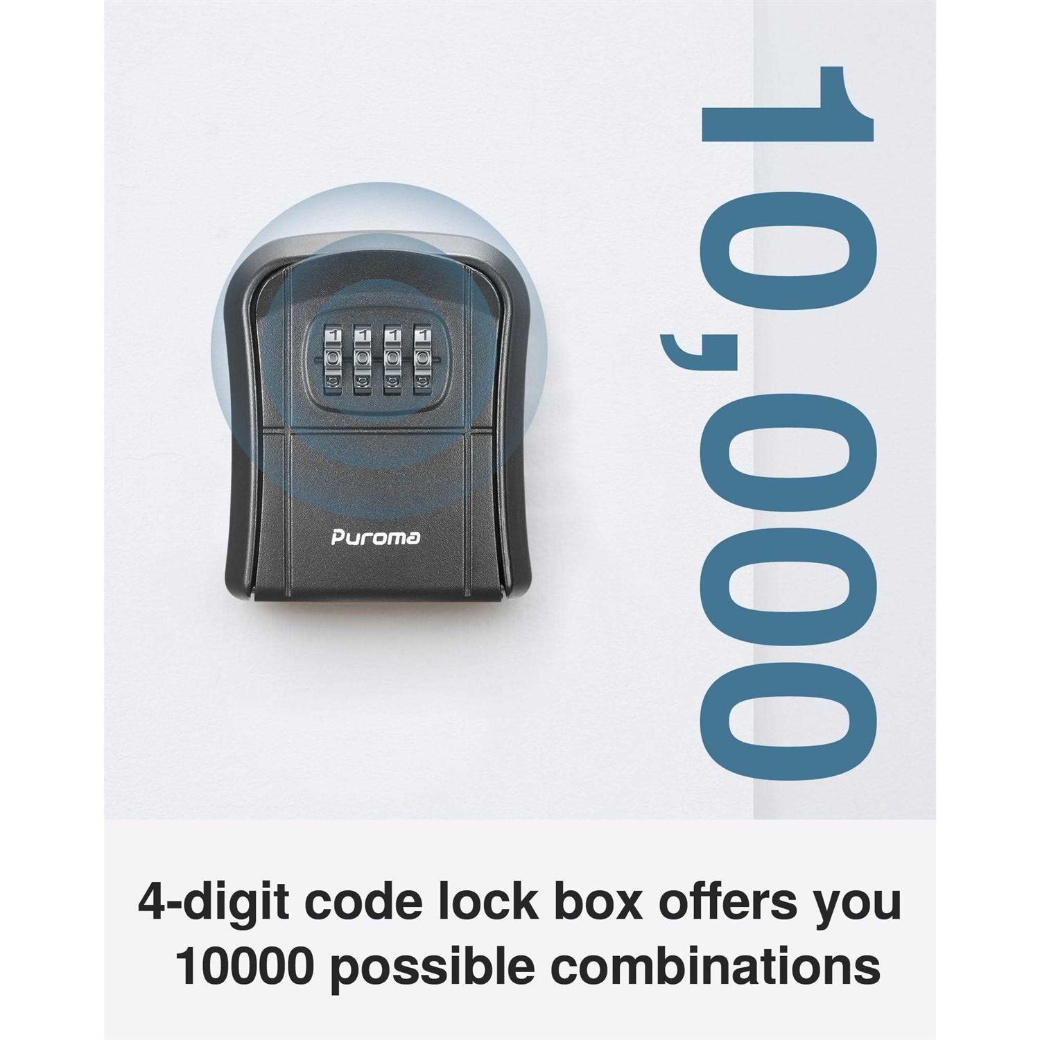 Puroma Key Lock Box Wall-Mounted Key Storage Box for House Keys, Resettable Code Safe Security Lock Box for Home, Office, Garage, Apartment Spare