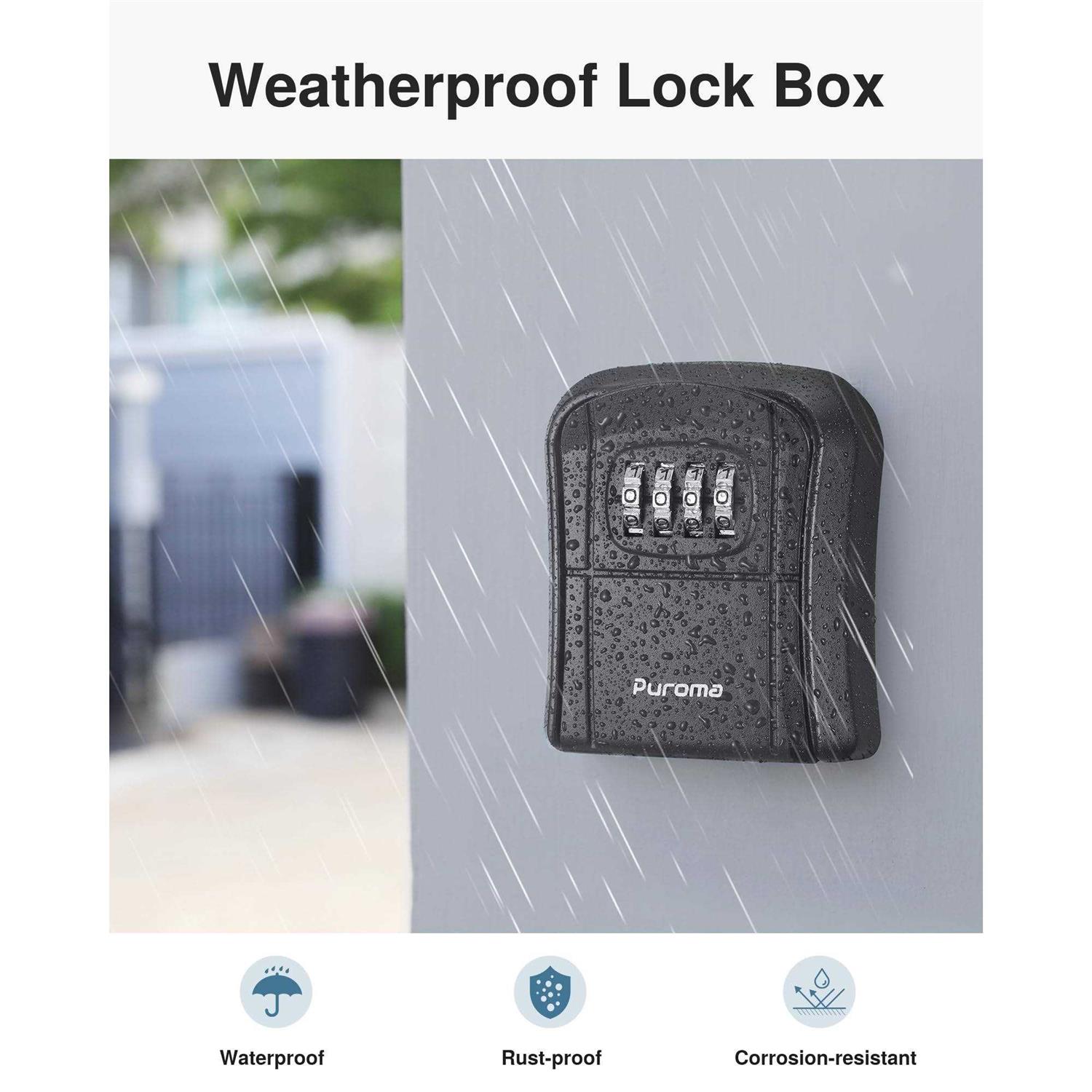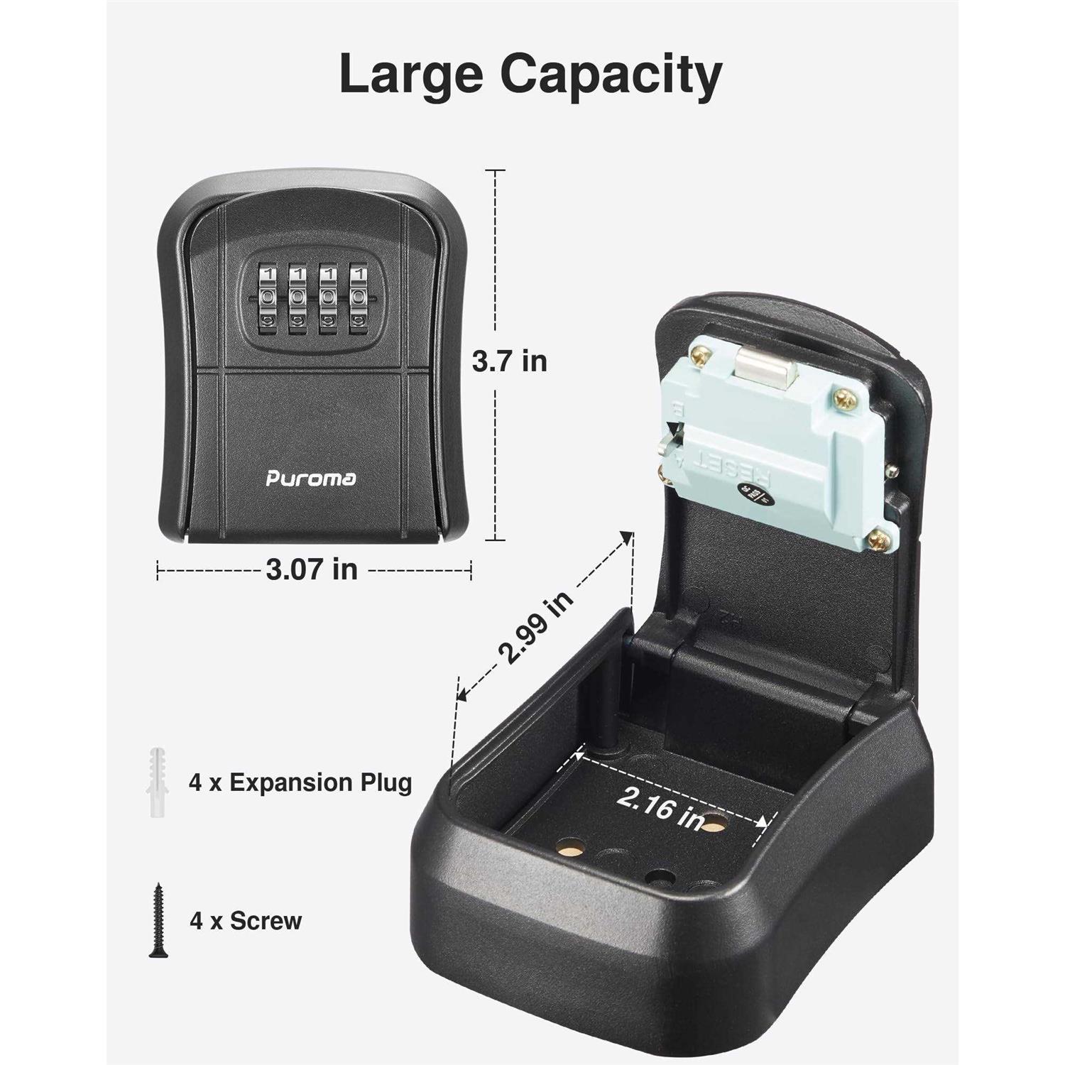 Wall Mounted Lockbox: It comes with the necessary mounting hardware. You can securely mount it on the wall of your home or office with the provided 4 screws and 4 expansion plugs. 2 black rubber plugs included prevent dust or water from entering the lockbox. Sturdy Security Lockbox: Puroma Key storage lock box is made of high-quality aluminum alloy and steel to keep your keys safe. Rustproof, cut-resistant and effective resistance to violent damage caused by hammering, sawing, or prying open. Easy to Use: The lock box code is pre-set with 0-0-0-0, you can reset your new custom 4-digit code in 4 simple steps. The numbers of dials are easy to move, providing you with 10,000 possible combinations. Safe and convenient. Large Capacity: The key lock box has a large internal storage space for safely storing your house keys. You can put your keys in the lockbox for emergency entry when you go out for business or a trip. Never worry about losing your keys. Wide Application: This key lockbox is rust-proof, corrosion-resistant, and weatherproof, suitable for home, office, garage, apartment entrance, and rental house key storage. Perfect for Airbnb realtors, cleaners, pet sitters, etc.