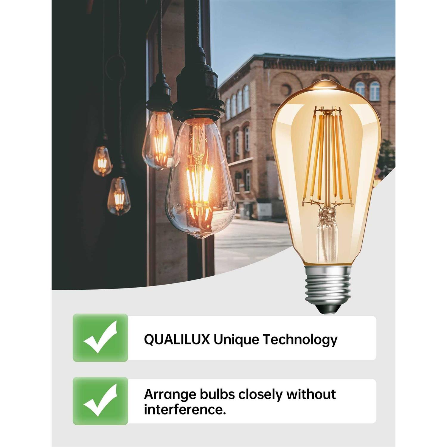 Qualilux Dusk to Dawn Edison Light Bulbs ST58 Vintage Amber Glass