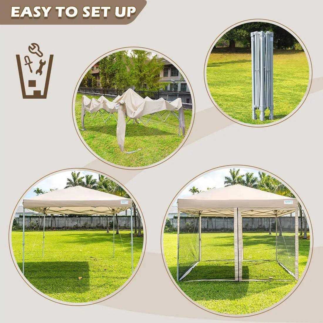 Quictent 8′ x 8′ Pop Up Canopy with Netting – Tan