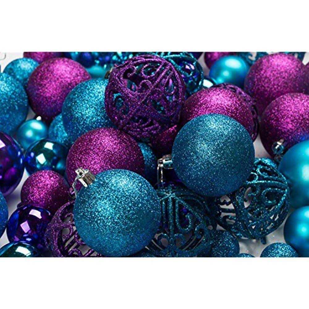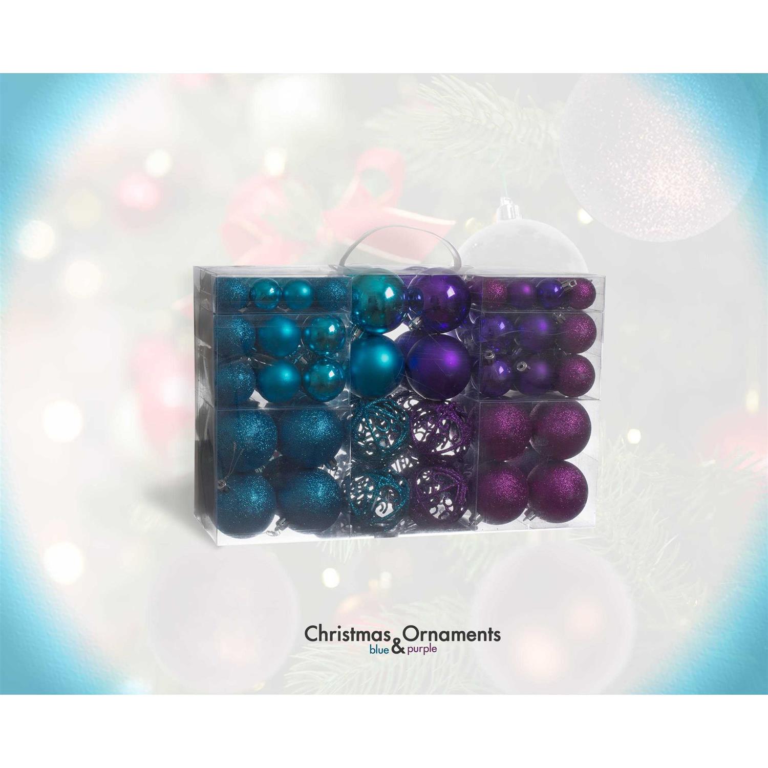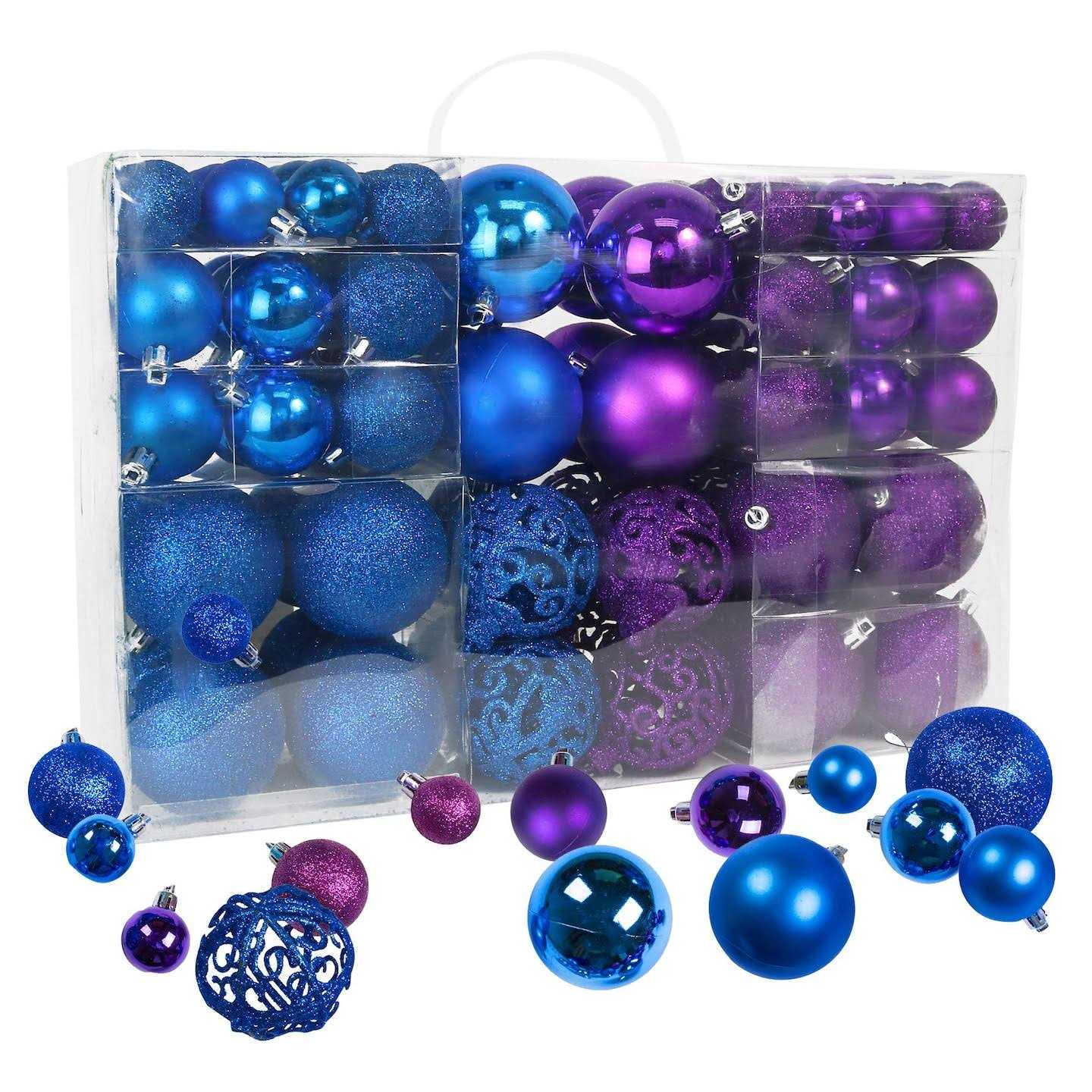 100 Purple and Blue Christmas Ornament Balls Shatterproof + 100