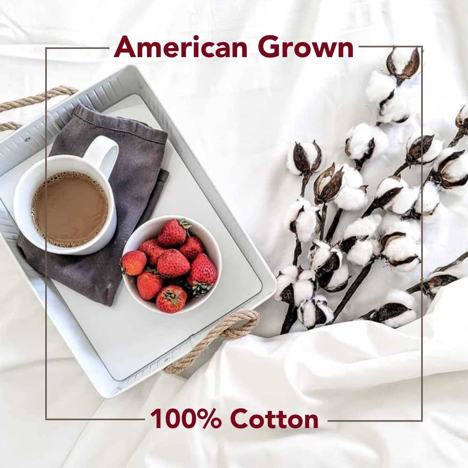 Basic Sheet Sets, White / Full / 16″ – “I love, love, love these sheets; just what I was looking for AND I’ve been looking for many years. Finally, a quality real cotton sheet set grown, and made in the USA! It’s about time! -Myrna T. Our best selling sheet sets are crafted from 100% cotton grown on our family farm in Alabama. Our sheets feature our signature yarn size and weave construction for a crisp cool percale sheet that is heaven to sleep on. Our basic sheets feature a sweetly simple 3 hem on the flat sheet and pillowcases. All sets come with 1 flat sheet, 1 fitted sheet, and 2 pillowcases. Split King sets come with 2 twin XL fitted sheets.