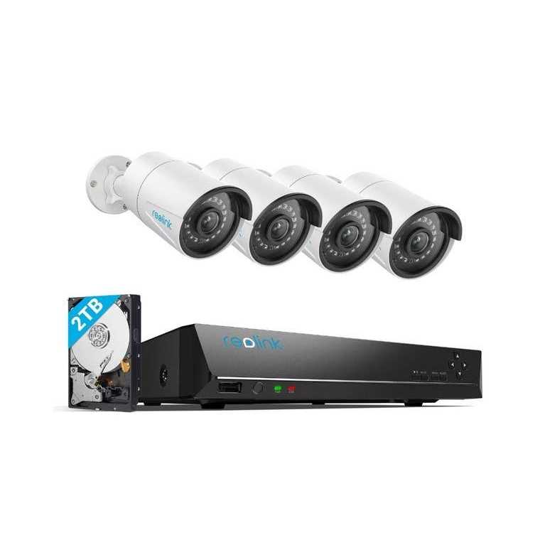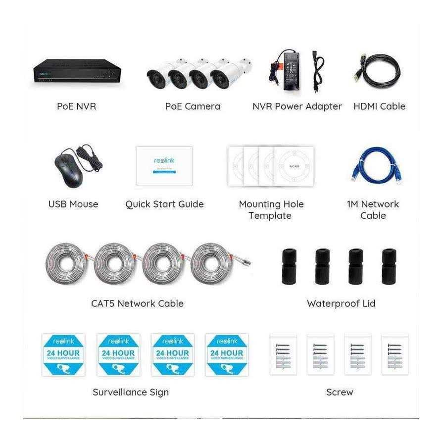 Reolink RLK8-410B4 5MP surveillance systems are designed to meet your home and business needs with easy installation and operation. This powerful 8-channel network video recorder system supports video recording of up to 8 cameras at the same time. Besides the in-box 4 bullet waterproof 4MP cameras, you can add another 4 cameras to expand the system for complete surveillance in large areas, such as your home, office, store, etc.