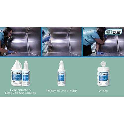 Rescue Ready to Use Disinfectants clean by removing tough soils such as dirt, grime, mold, mildew, blood, urine, and fecal matter. Rescue Ready to Use Disinfectants reduce odor-causing bacteria, leaving surfaces smelling clean and fresh. Its non-abrasive formula is designed for use on hard, non-porous surfaces associated with non-food contact countertops, cages, kennels, animal equipment and devices found in animal housing facilities. With the power to kill pathogens like Parvovirus, Rescue remains gentle on users, animals and equipment.