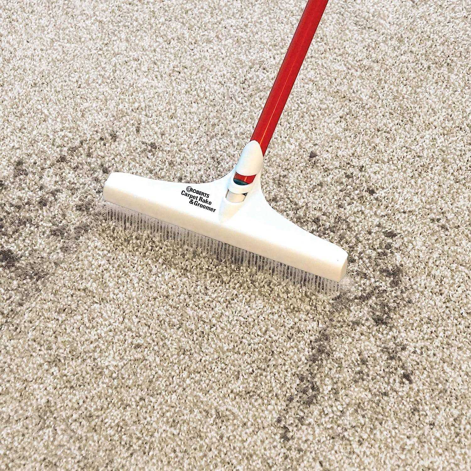 The ROBERTS Carpet Rake and Groomer is ideal for quick, easy, and thorough maintenance of cut pile carpet. With a push-pull motion, the rake pulls trapped dirt, pet hair and debris up to the surface for more thorough vacuuming. With a raking motion, this tool revives crushed and matted carpet so it appears new. Loosens and lifts embedded soil and hair from cut pile carpet before vacuuming. 12″ wide head cleans large areas quickly and long, 51″ handle reaches under furniture and into corners. Cold rolled steel handle with polypropylene head and nylon bristles for long lasting use. Bristles reach deep down to the base of carpet. Removes vacuum tracks to help carpet pile appear new.