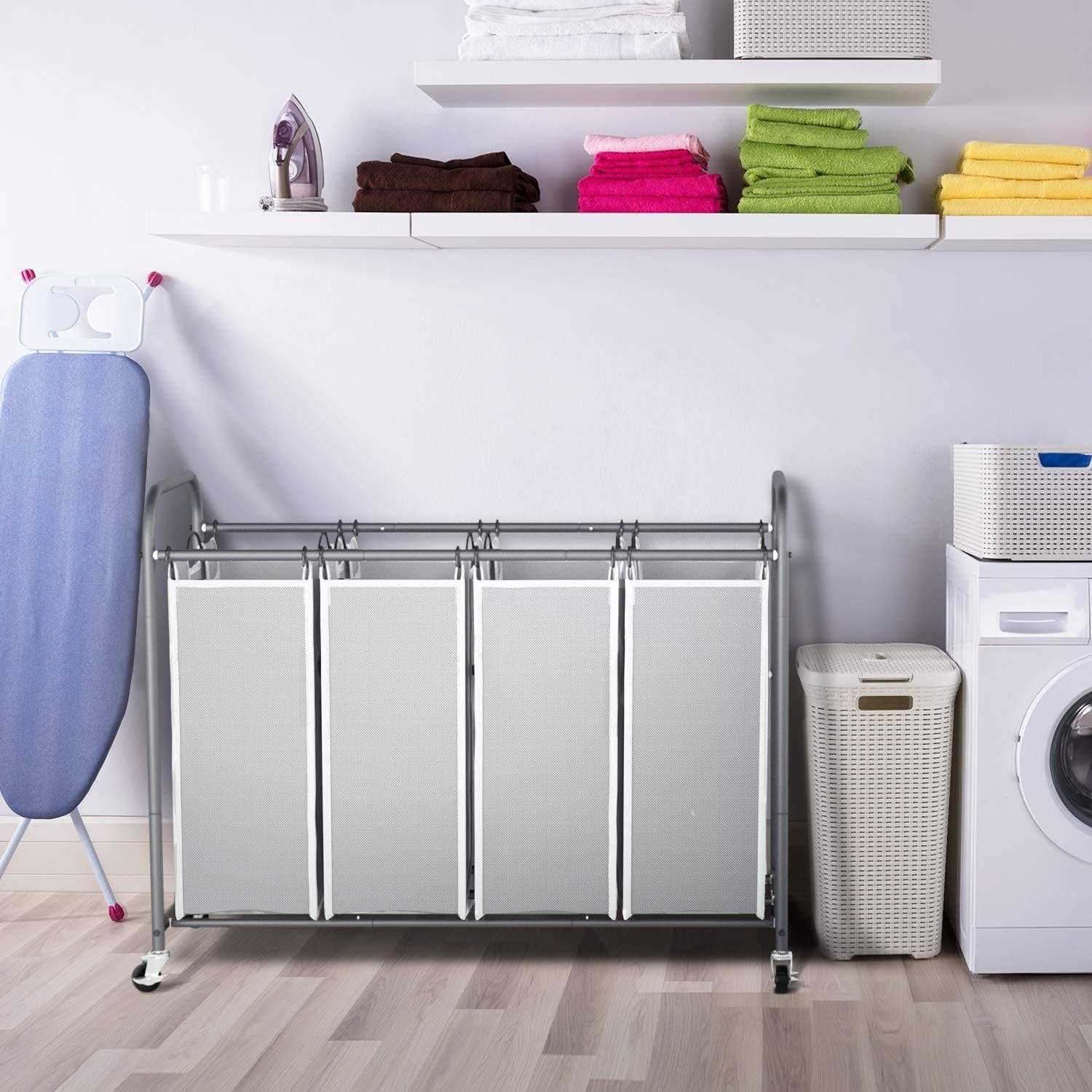 ROMOON 4 Bag Laundry Sorter Cart Laundry Hamper Sorter with Heavy Duty Rolling Wheels