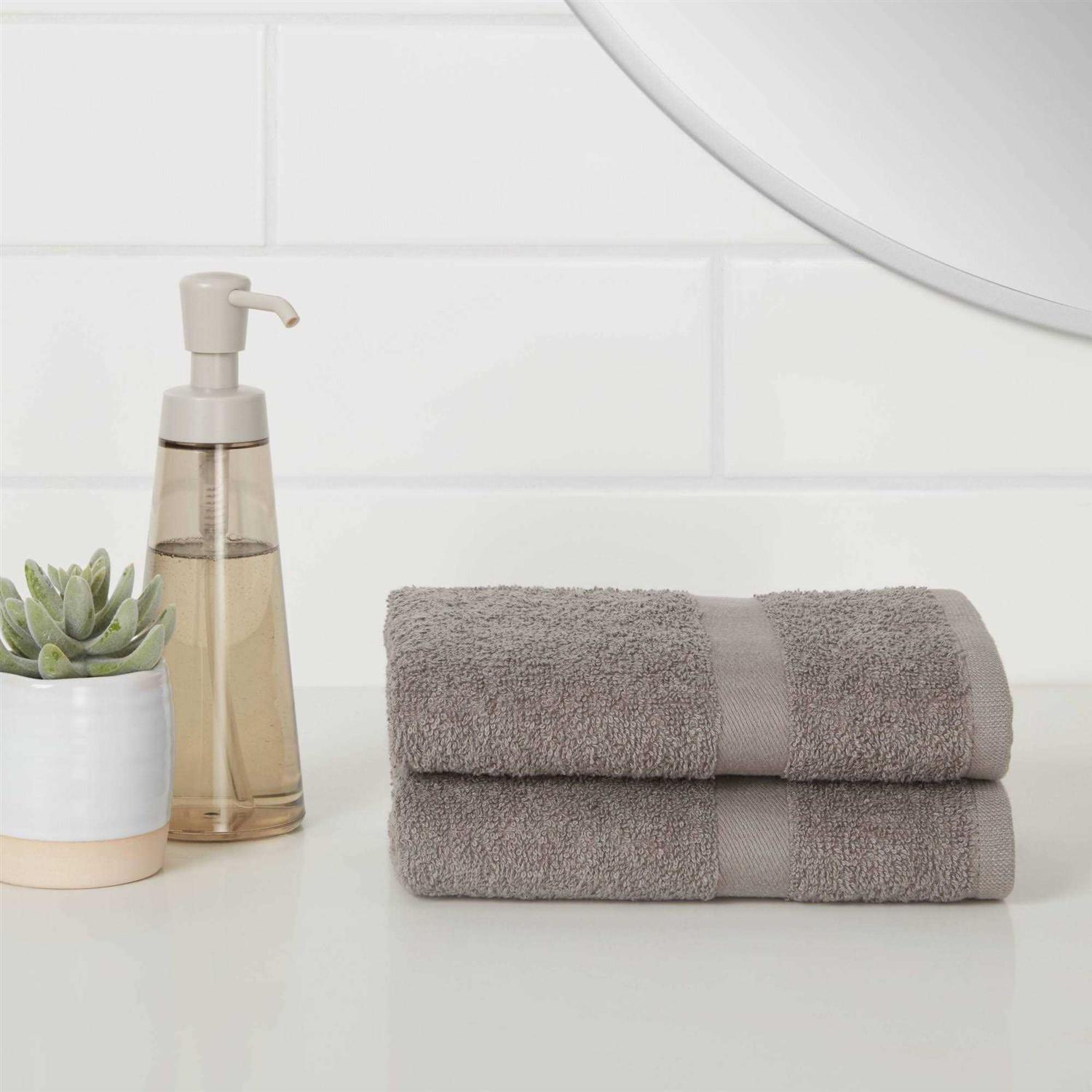 Made from a lightweight, cotton-blend terry fabric, these hand towels feel soft against your skin, allowing you to dry your hands in comfort. This set includes two hand towels, both designed in the same solid color to easily blend with your existing bathroom decor style and color palette. Room Essentials : Everyday Value Color: Dark Gray.