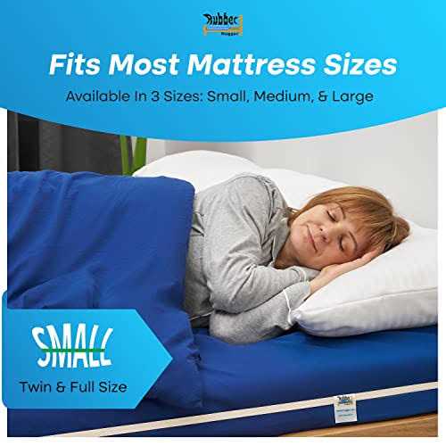 Rubber Hugger Hugs Your Sheets So They Stay Secure. Rubber Hugger is unlike any product you will see for helping keep your sheets and bedding in place. This unique concept is a proven safe and effective way of solving some of the most common frustrations people deal with when it comes to the sheets and bedding. Using horizontal tension Rubber Hugger keeps your bottom fitted sheet from coming off the corners of your mattress.Rubber Hugger fits horizontally on your mattress. You can even tuck your top sheet into the band to keep it more secure. No tucking under the mattress is required.Any standard comforter will keep Rubber Hugger hidden and out of the way. _ Choose the Rubber Hugger size designed for your mattress size. For proper sizing review the sizing chart in the product picture area.