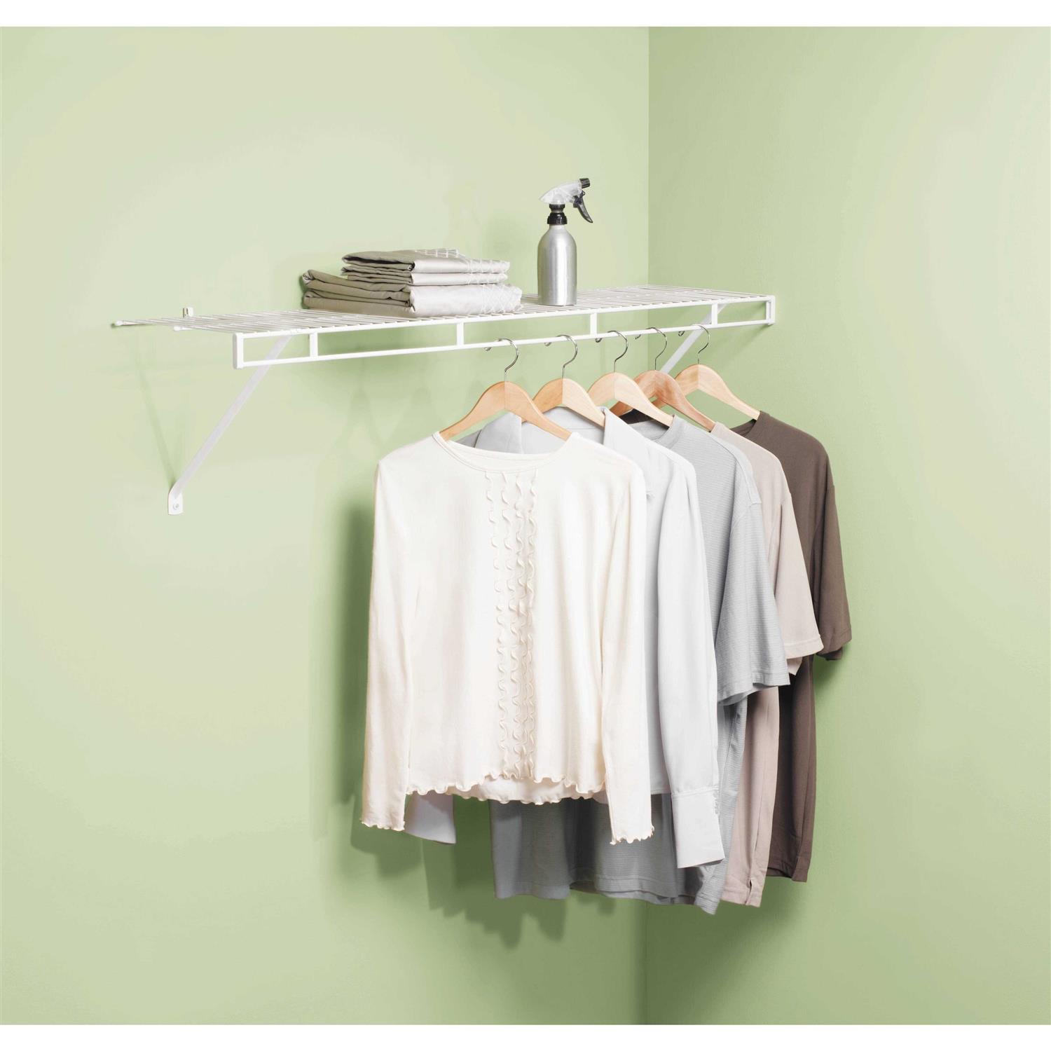 A simple way to add storage where you need it Wardrobe Shelf Kits instantly adds a shelf and hanging rod to existing closets laundry rooms garages or utility rooms. Epoxy-coated for strength and durability these kits will not stain.