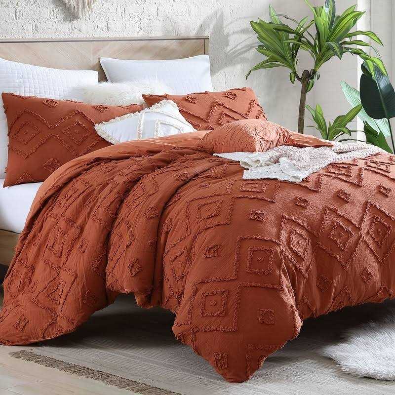 Swift Home Rukai Diamond Jacquard 5-Piece Comforter Set – King/Cal King, Rust