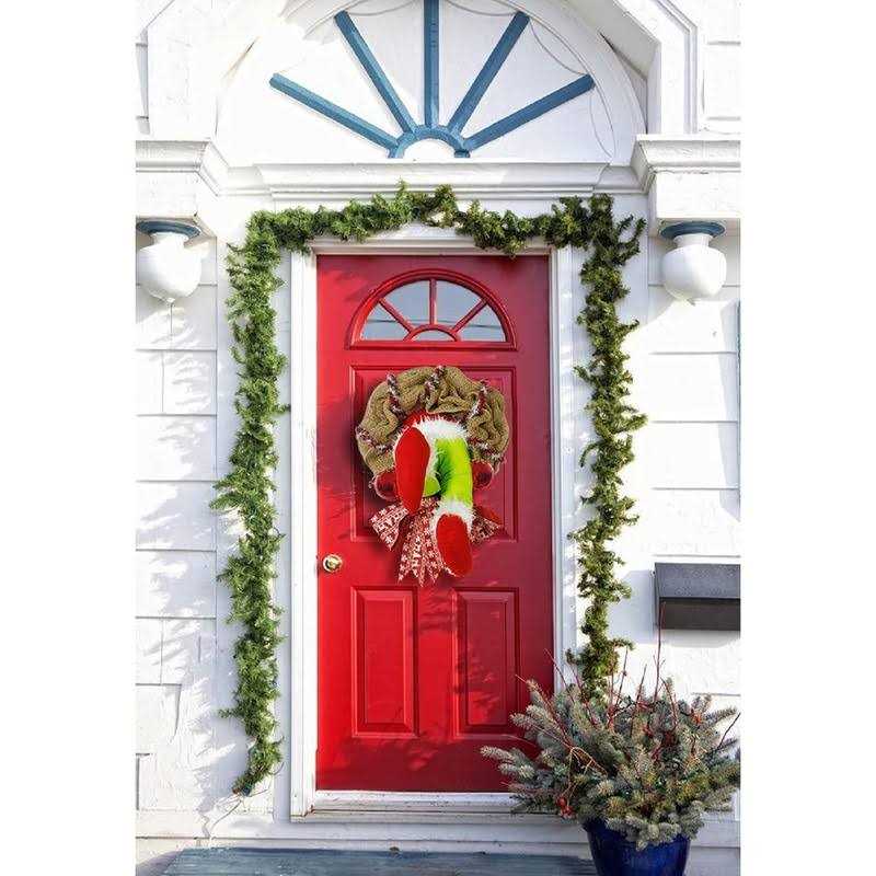 Rushbom Wreath Christmas Thief Wreath How The Christmas Thief Stole Christmas Burlap Wreath for Front Door Decoration Santa Claus Wreath