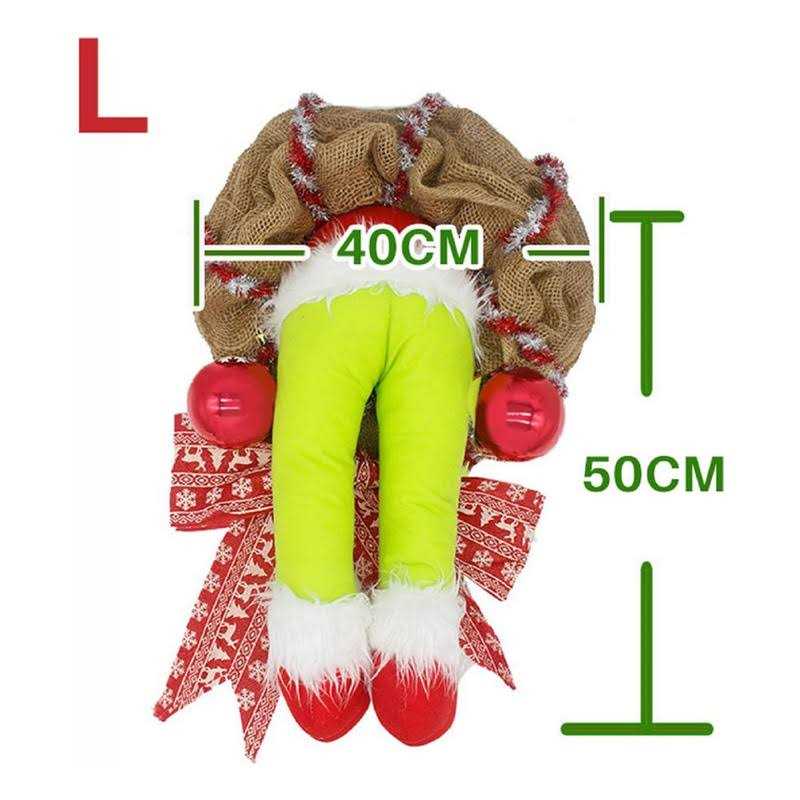 Material: The Christmas wreath is made of burlap, plush plush legs, wired wreath frame, jute rope, and Christmas decorations, which are environmentally friendly and beautiful. Original Intent: This inspired wreath will make anyone’s heart grow three times a day! Made from burlap ribbon to look like legs are sticking deep out of Santa’s sack! Christmas Burlap Wreath: The design of the Christmas burlap wreath perfectly enhances the festive atmosphere, and the interesting image brings joy to people. Its long hairy legs can be positioned so you can create Christmas scene on the wreath! The Christmas thief has been cleverly disguised as Santa himself. Merry Christmas: Garland Decoration is an excellent decoration for the upcoming Christmas celebrations. The lovely Santa Claus/Christmas thief wears the burlap garland to make your house full of Christmas atmosphere. Occasions: Suitable for large-scale Christmas Thanksgiving / wedding decorations for families, walls, doors, living rooms, bedrooms, windows, Christmas trees, etc. It is a perfect gift for family and friends. Descriptions: br br Size: S / M / L. br br S: about 30 x 40 cm br br M: about 35 x 45 cm br br L: about 40 x 50 cm br br br br Package Contents: br br 1 * Christmas Wreath br