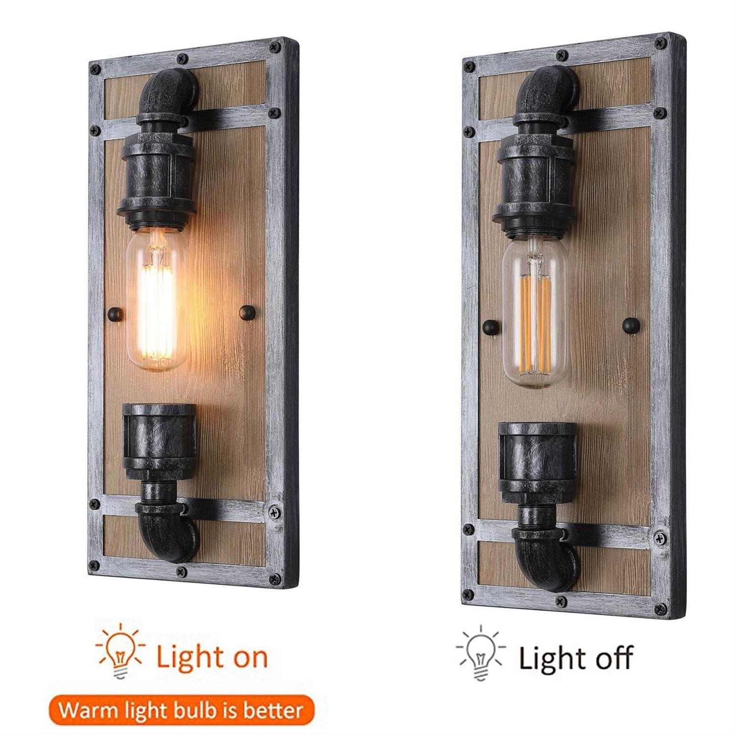 This Rustic light wood wall sconce fixture is inspired by a classic farmhouse design, made of vintage square real wood frame, which adds rustic charm and retro style to your space. It will be a retro & fashionable decor for your house. Perfect for kitchen, dining room, hallway, foyer, entryway, nursery, entrance way, hallway, bedrooms, sink, dining table, Cafe, restaurant, study, office, warehouse, club and etc. FEATURES Weather resistant and suitable for wet locations Has a rust-proof iron construction Light Source: Requires one E26 light bulb. Light Bulb: Compatible with incandescent, LED, CFL, halogen bulbs. (60W max, Bulb NOT Included). Materials: Iron plated+Wooden backboard Installation Type: Hardwired. Voltage: 110 ~ 120V PRODUCT DIMENSION Backplate is 14.96″ high x 6.69″ wide. QUICK INSTALLATION Easy installation with open bottom to allow for easy bulb replacement. The package already Includes all mounting hardware, and a installation instruction. Glass is easy to clean.