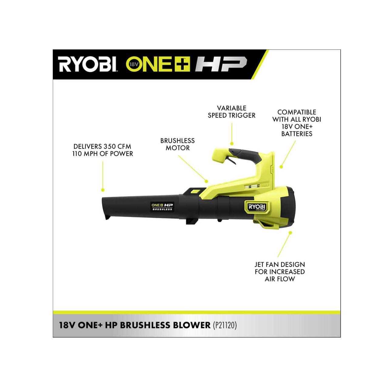 Ryobi One+ HP 18V Brushless 110 MPH 350 CFM Cordless Variable-Speed Jet Fan Leaf Blower