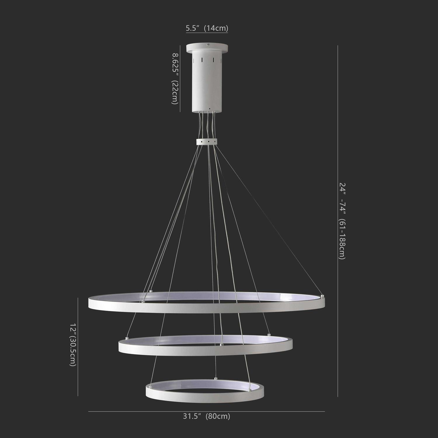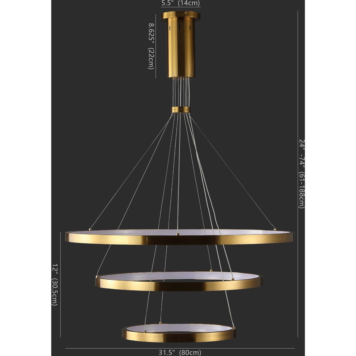 The Meranda Chandelier is a stunning embodiment of modern glamour. With its minimalist design it effortlessly elevates any living space. The chandelier features three tiers of illuminated halos which create a mesmerizing illusionary display. The halos appear to float in midair adding a sense of movement and depth to the room. The shimmering gold finish adds a touch of elegance making it a statement piece in any setting. This chandelier is truly in a class of its own transforming your living space with its rich depth and motion.