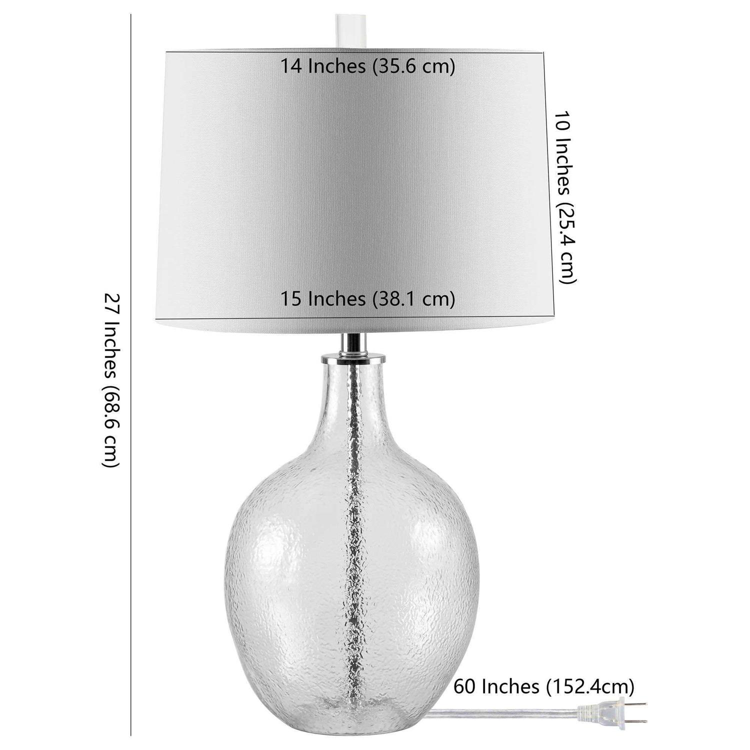 This Nadine Table Lamp pays homage to masters of glasswork with its classic urn silhouette but is absolutely today with its modern metal hardware. Ideal for any dcor, Nadines clear glass body glimmers in the light diffused beneath its contemporary drum shade. Begin your rug, furniture, lighting, outdoor, and home decor search and discover over 100,000 SAFAVIEH products today.