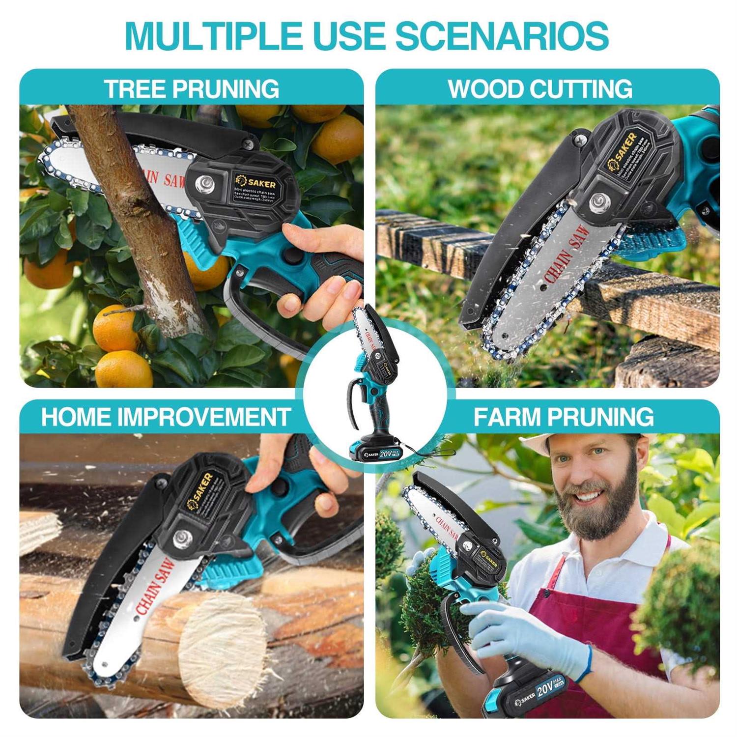 Saker 4 inch Mini Chainsaw, Portable Electric Chainsaw Cordless, Handheld Chain Saw Pruning Shears Chainsaw for Tree Branches , Courtyard, Household