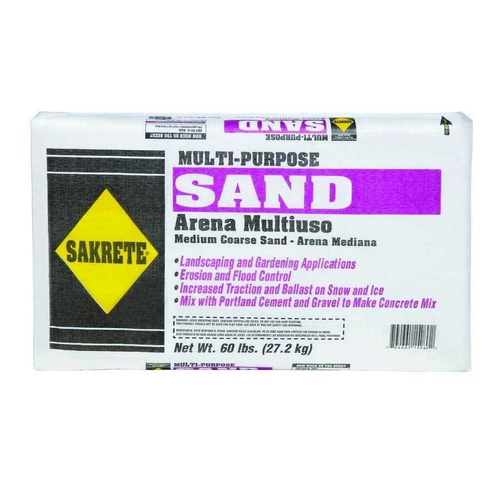 SAKRETE Multi-Purpose Sand is a general purpose product for landscaping projects and a wide range of other applications. This sand is graded, washed, dried and sanitized for use in gardens, cat litter boxes, for ice and snow traction or as weight sand. Exceptionally versatile, it is also ideal as a base material for pavers and stepping stones.