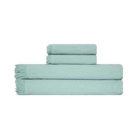 Bundle & Save! The Terra XL Bath Bundle in seaglass is an essential to any home. Designed with a flat weave face and looped terry back, these lightweight towels absorb moisture quicker. This bundle includes 2 bath towels and 2 hand towels complete with tasseled fringe for added style.