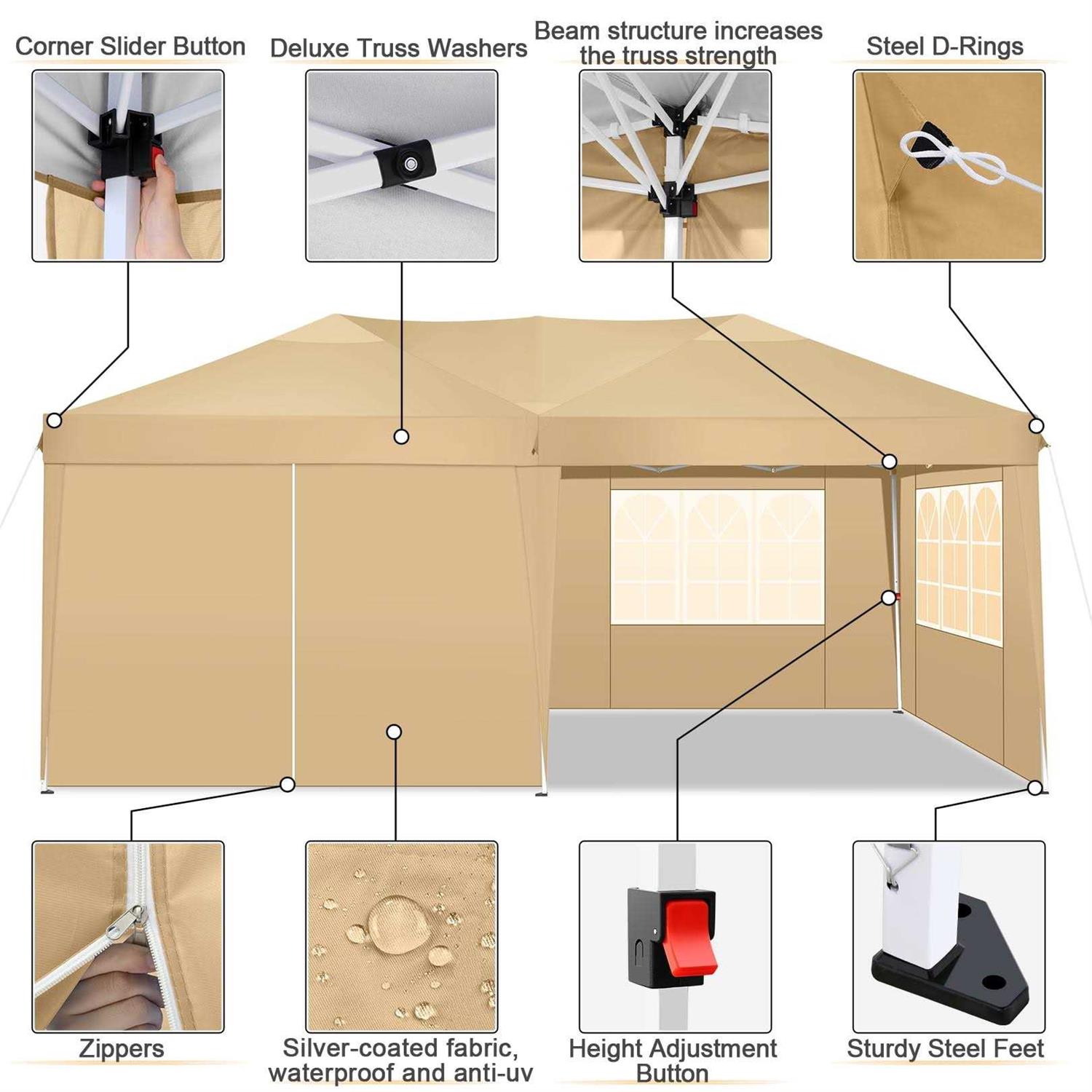 Sanopy 10’x20′ Outdoor Canopy Tent EZ Pop Up Backyard Canopy Portable Party Commercial Instant Canopy Shelter Tent Gazebo with 6 Removable Sidewalls &