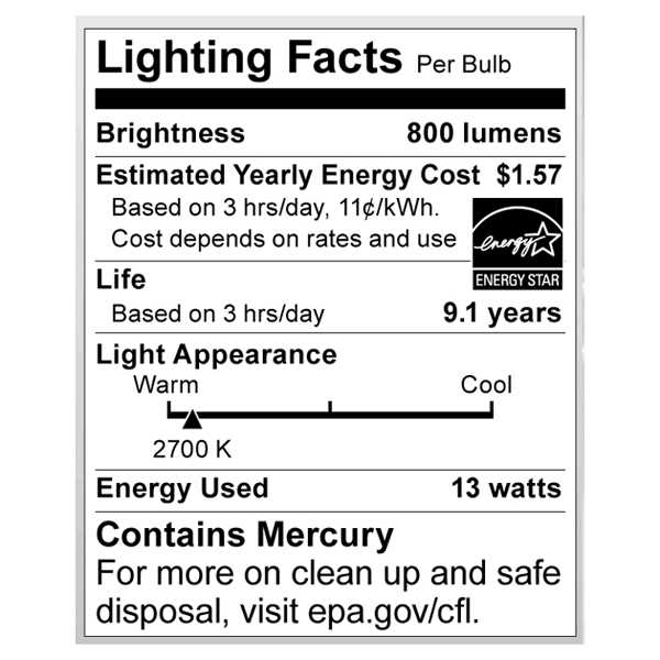 Compact Fluorescent light bulbs, or CFLs, are an energy-efficient alternative to traditional incandescent and halogen lights. They use less energy than these kinds of lights, although they use more energy than comparable LED models. CFLs are ideal for use in offices, kitchens, hallways, and other areas that need a large area of light. Because they produce about 75% less heat than incandescent bulbs, they keep rooms they light cooler than traditional lights would.Satco’s model S8203 light bulb uses 13W of power, with a brightness of 800LM lumens. It fits a GU24 base, and produces a warm white light. With typical use, it lasts about 10000 hours on average before requiring a replacement. This product is sold in multiples of 12.