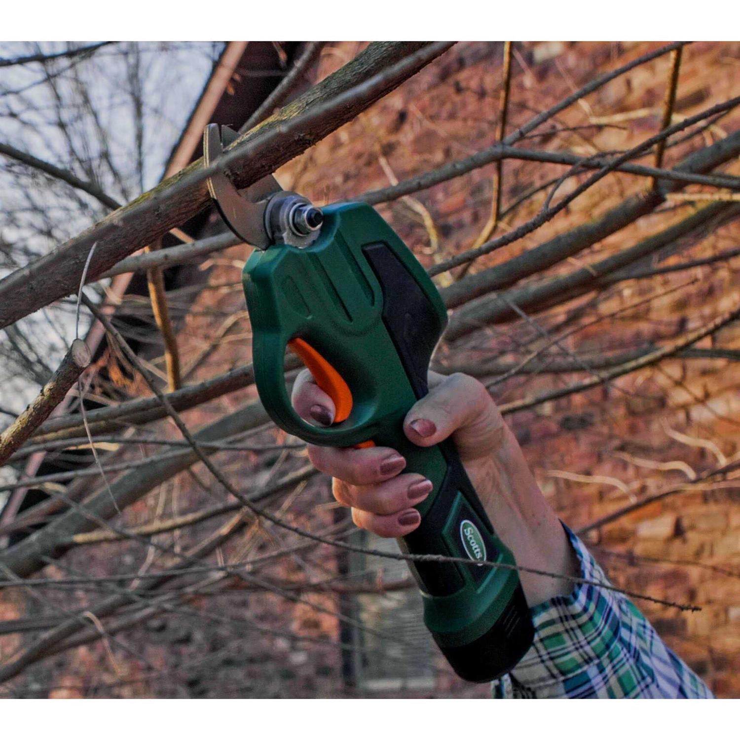 Scotts electric shears make cutting and pruning easy for you. It can help beautify your garden effortlessly without fail. This gives you 200 to 800 effortless cuts in a single charge. The Scotts cordless pruner is ideal for bushes, shrubs, and other woody stems and branches. As a battery-operated power pruner, this gardening tool reduces hand fatigue when cutting stems, so you can have effortless and enjoyable gardening.